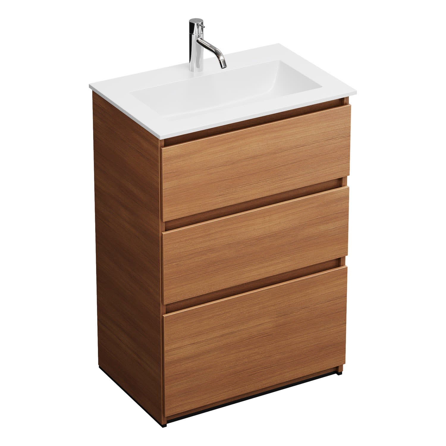 burgbad Lin20 Waschtischunterschrank mit Mineralguss-Waschtisch 62 cm, 3 Auszüge