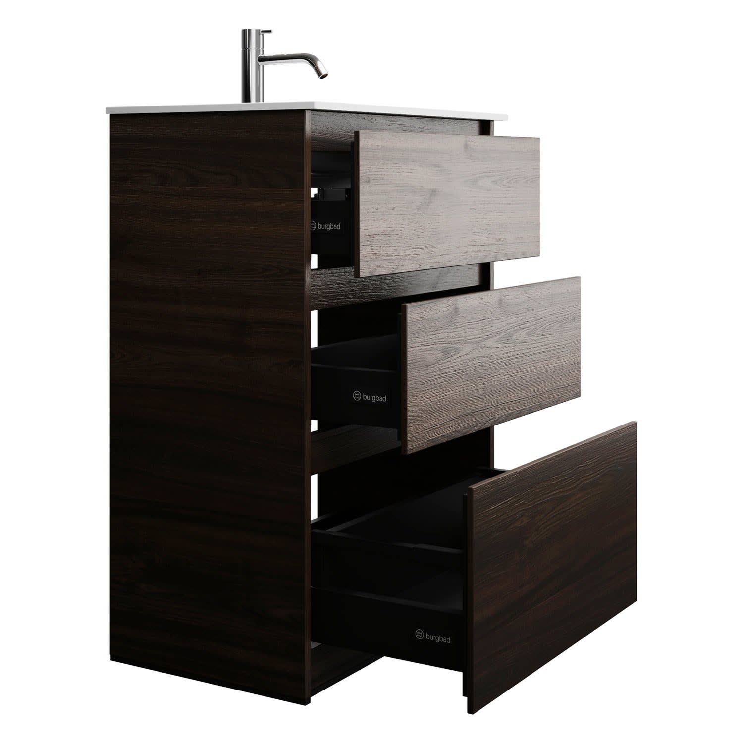 burgbad Lin20 Waschtischunterschrank mit Mineralguss-Waschtisch 62 cm, 3 Auszüge