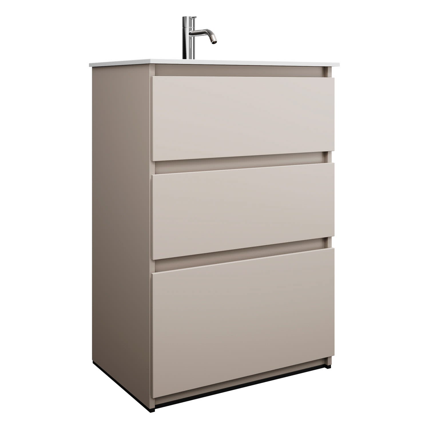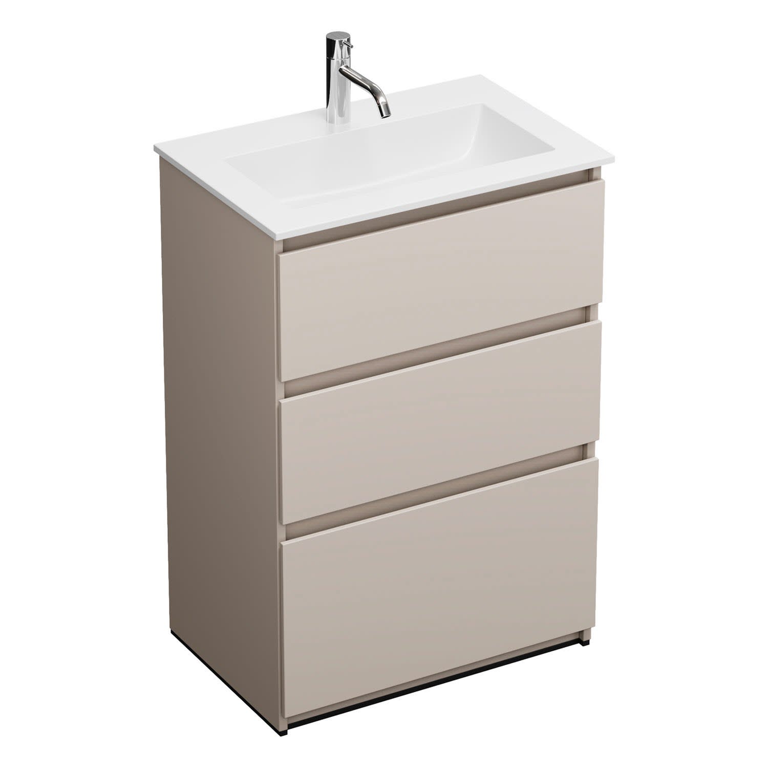 burgbad Lin20 Waschtischunterschrank mit Mineralguss-Waschtisch 62 cm, 3 Auszüge