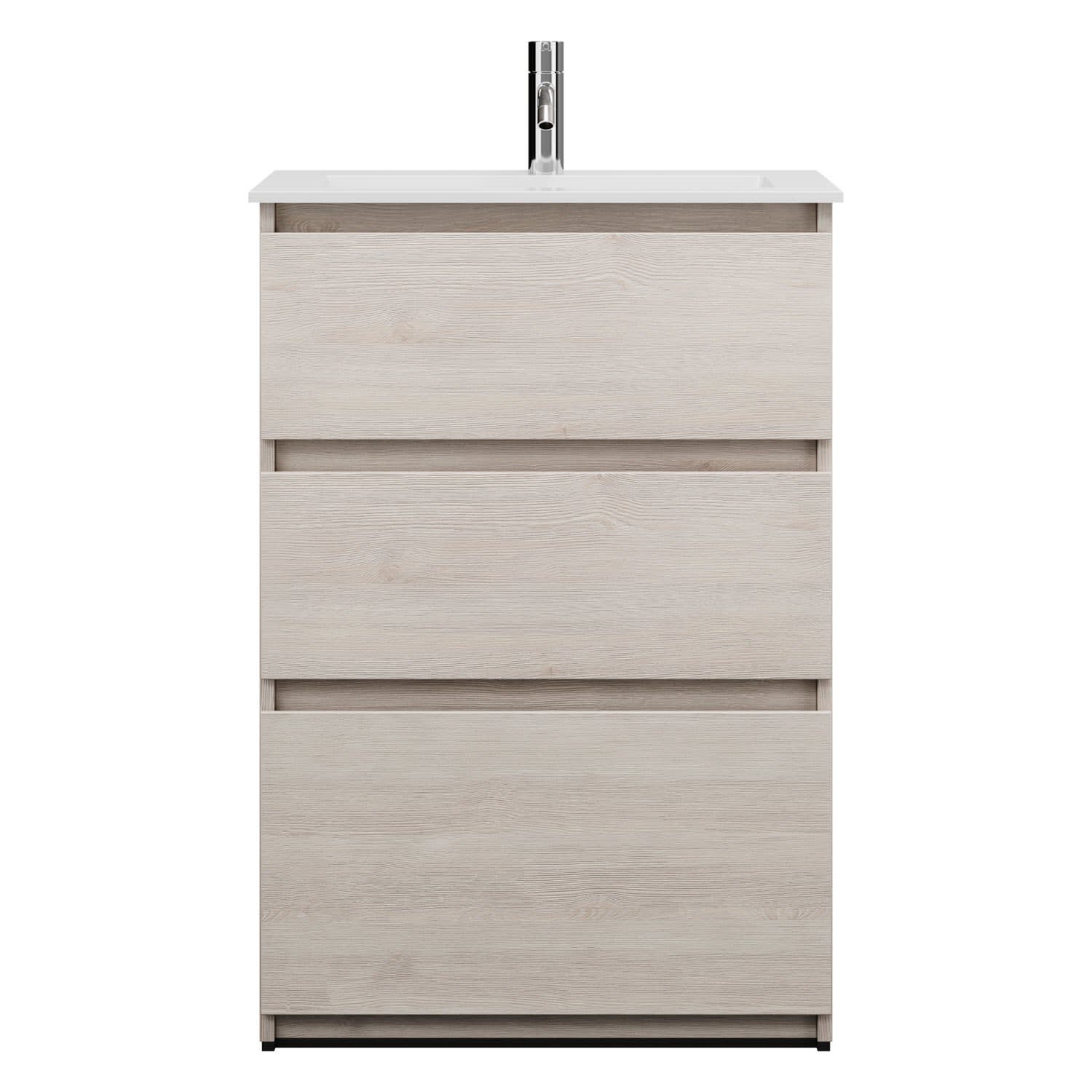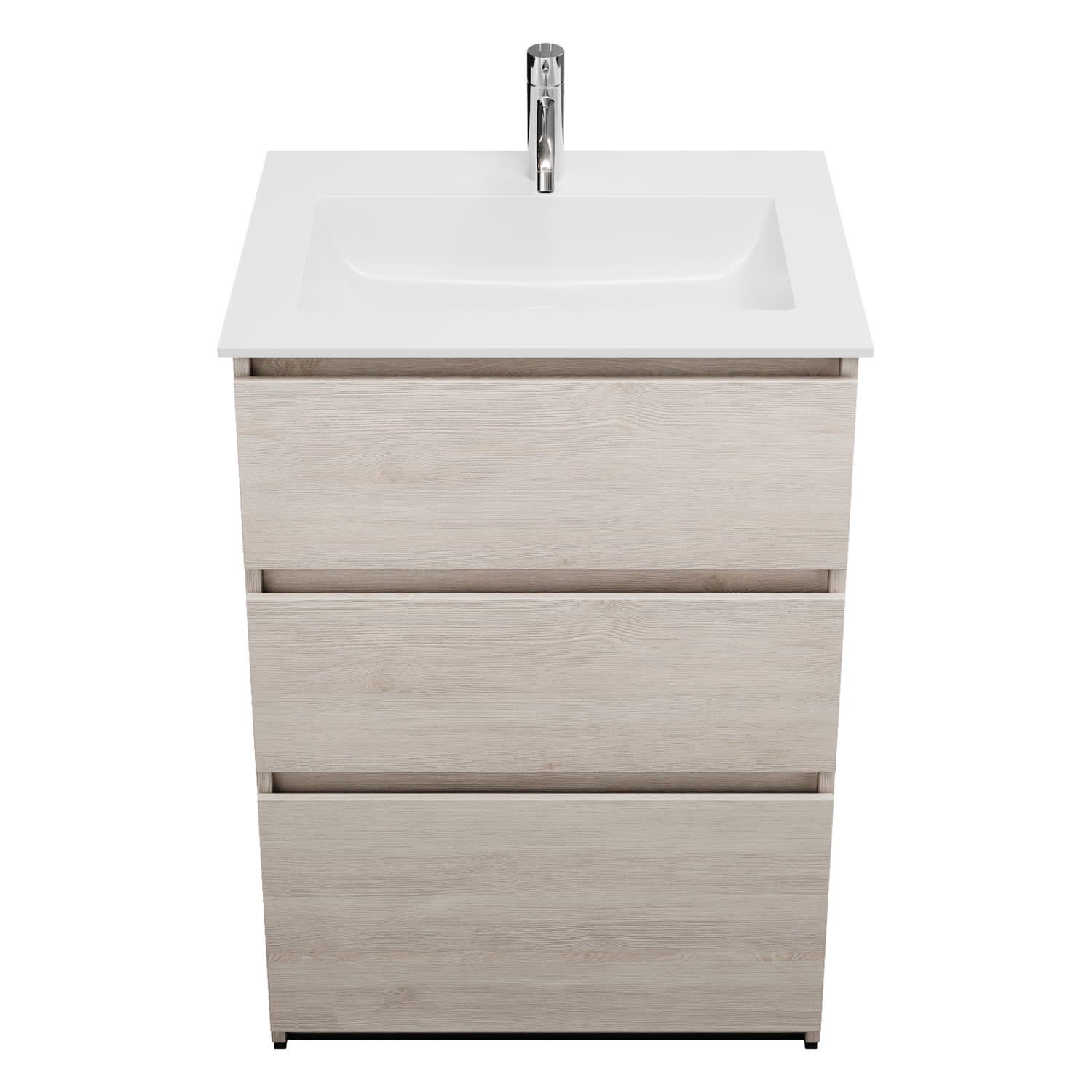 burgbad Lin20 Waschtischunterschrank mit Mineralguss-Waschtisch 62 cm, 3 Auszüge