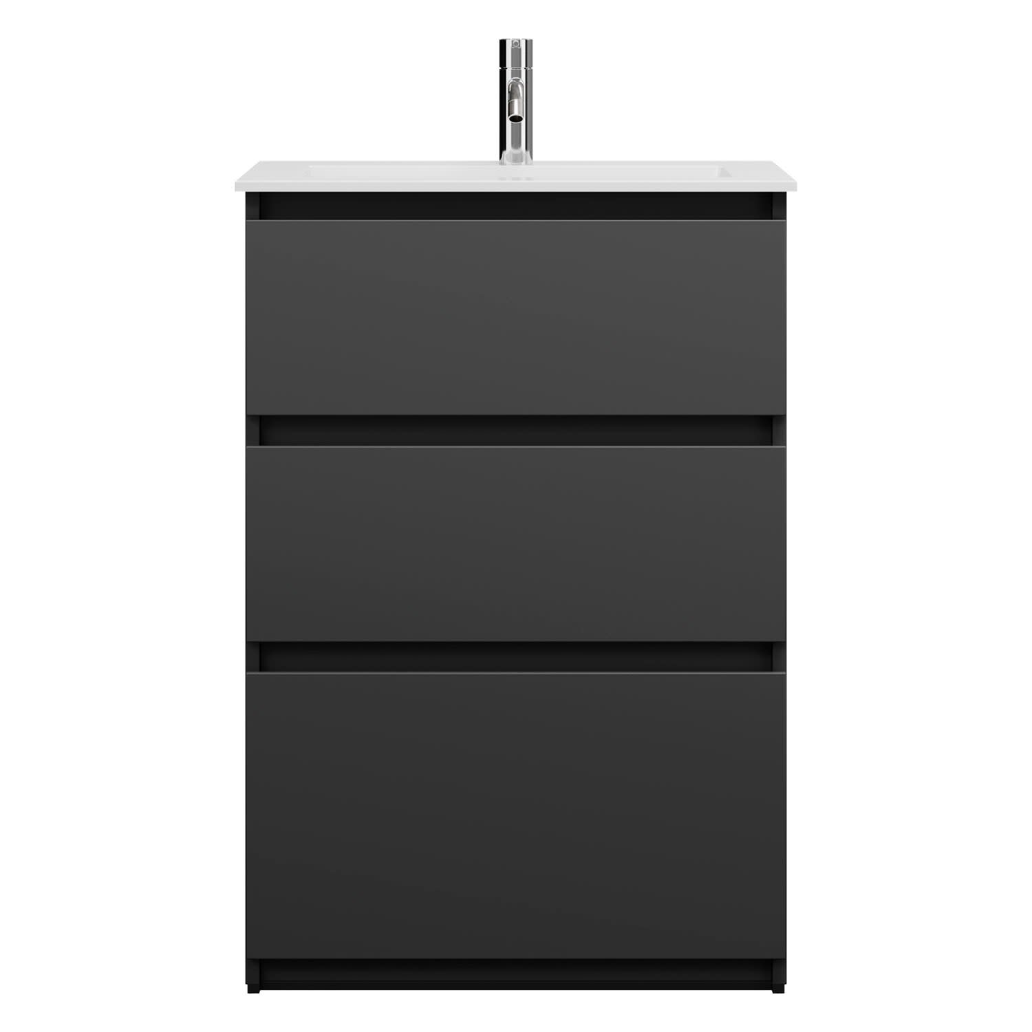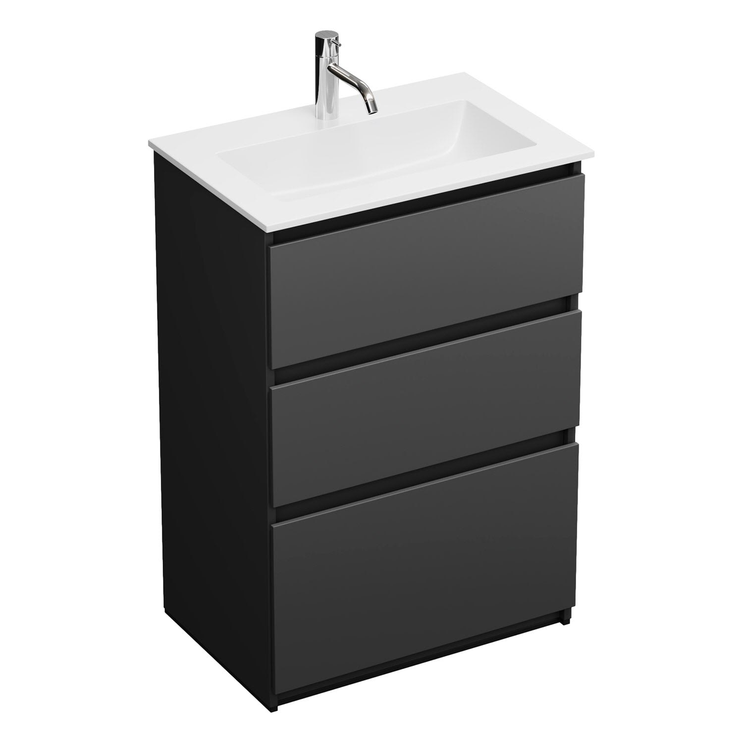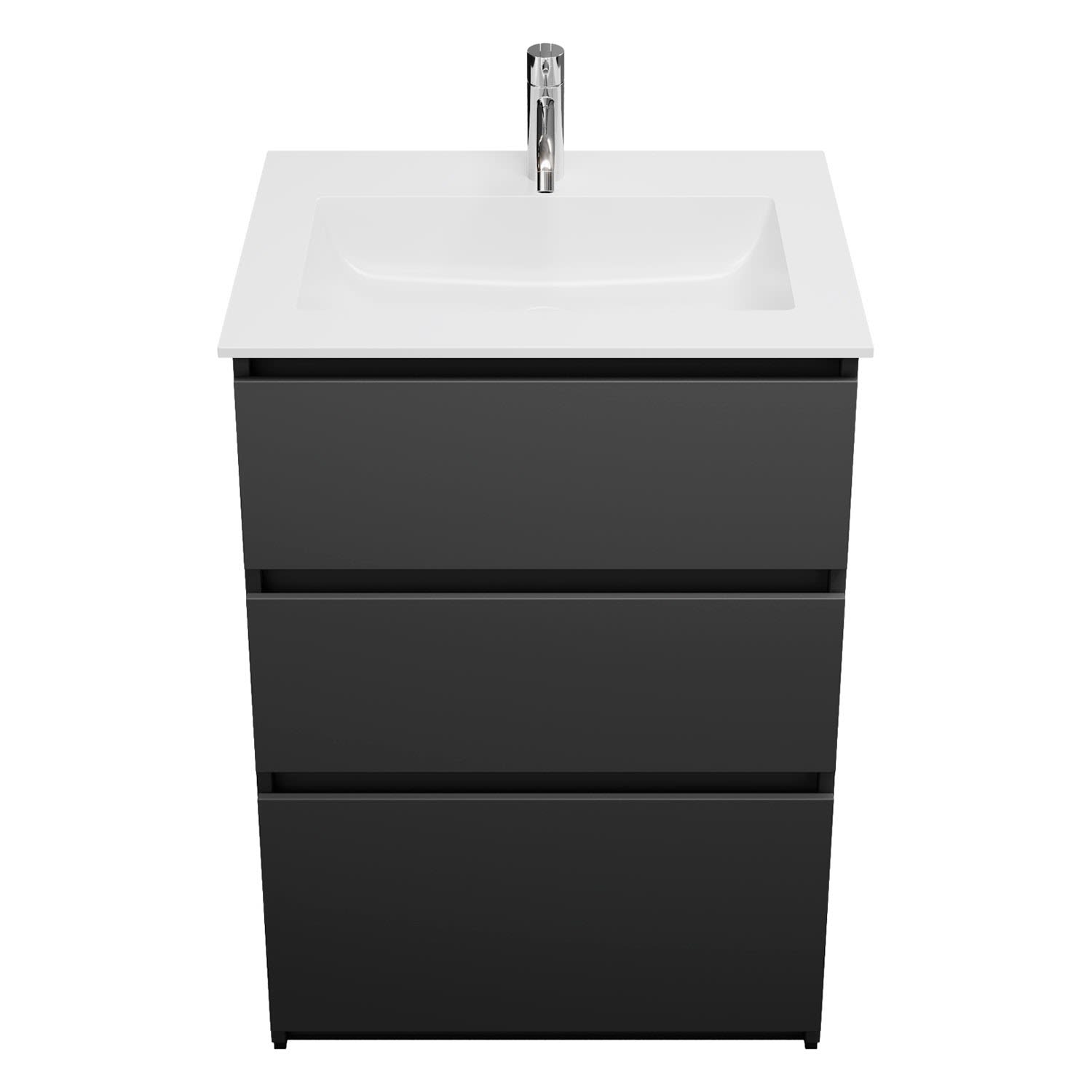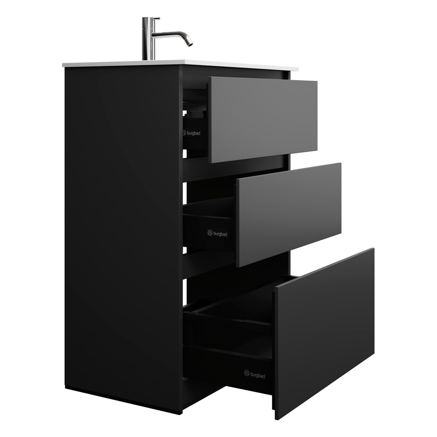burgbad Lin20 Waschtischunterschrank mit Mineralguss-Waschtisch 62 cm, 3 Auszüge