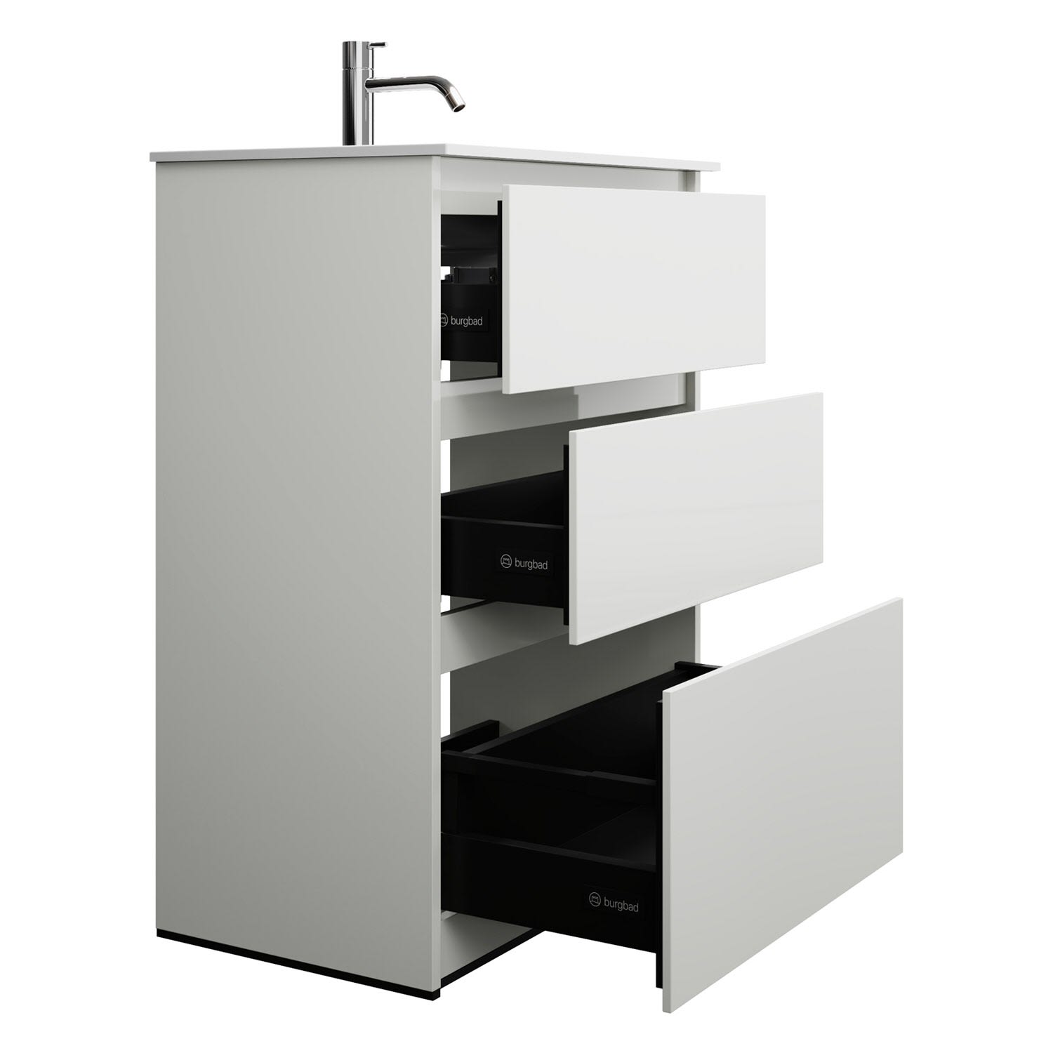 burgbad Lin20 Waschtischunterschrank mit Mineralguss-Waschtisch 62 cm, 3 Auszüge