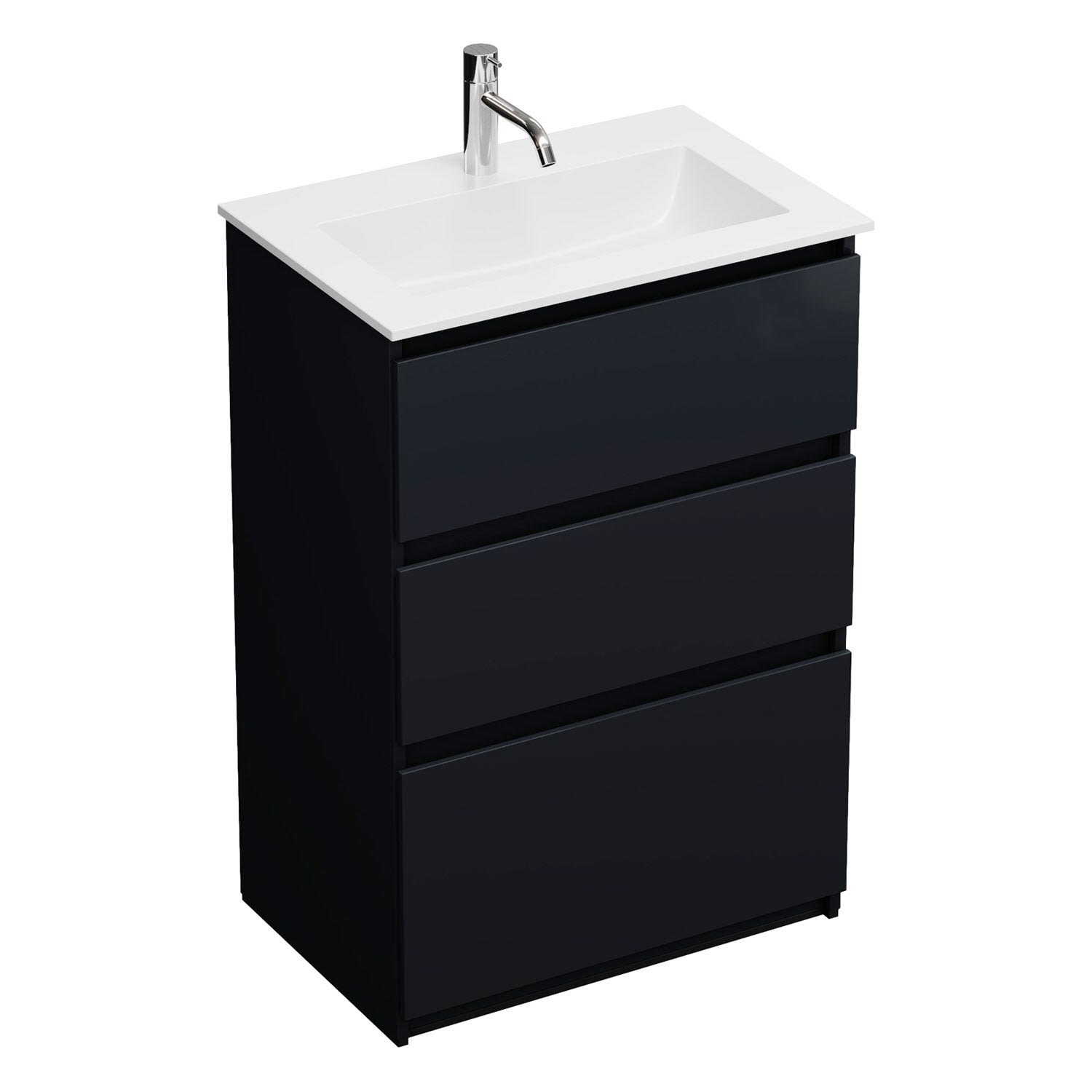 burgbad Lin20 Waschtischunterschrank mit Mineralguss-Waschtisch 62 cm, 3 Auszüge