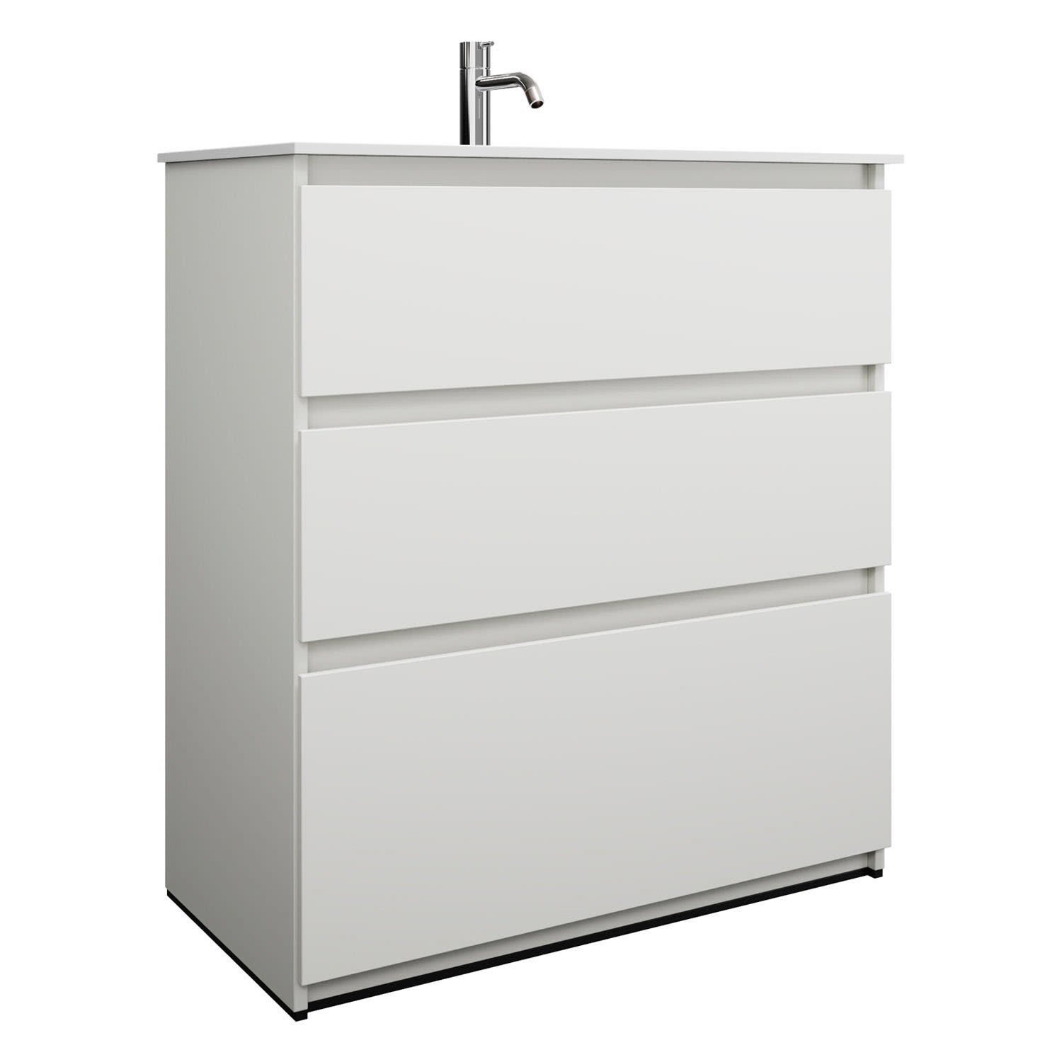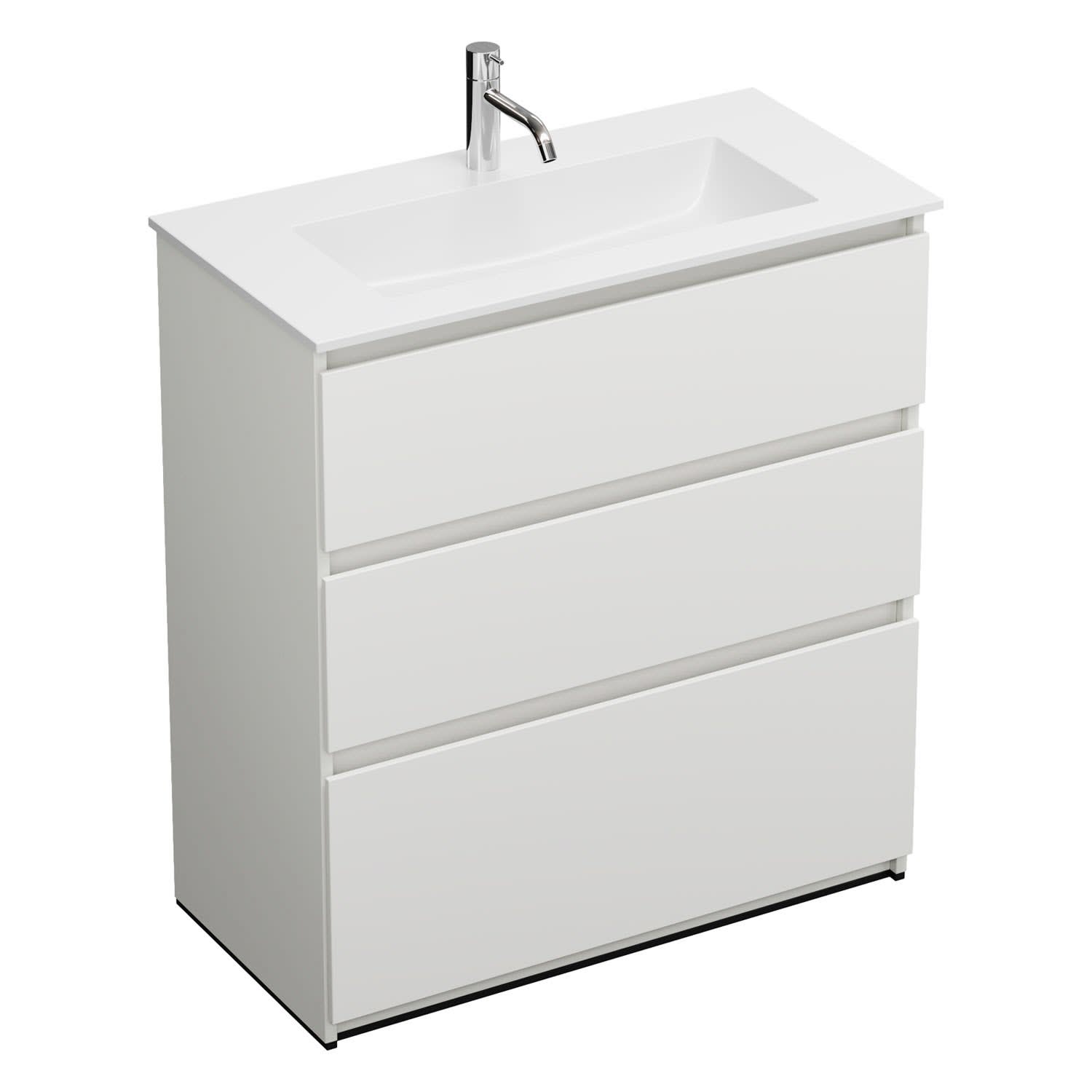 burgbad Lin20 Waschtischunterschrank mit Mineralguss-Waschtisch 82 cm, 3 Auszüge