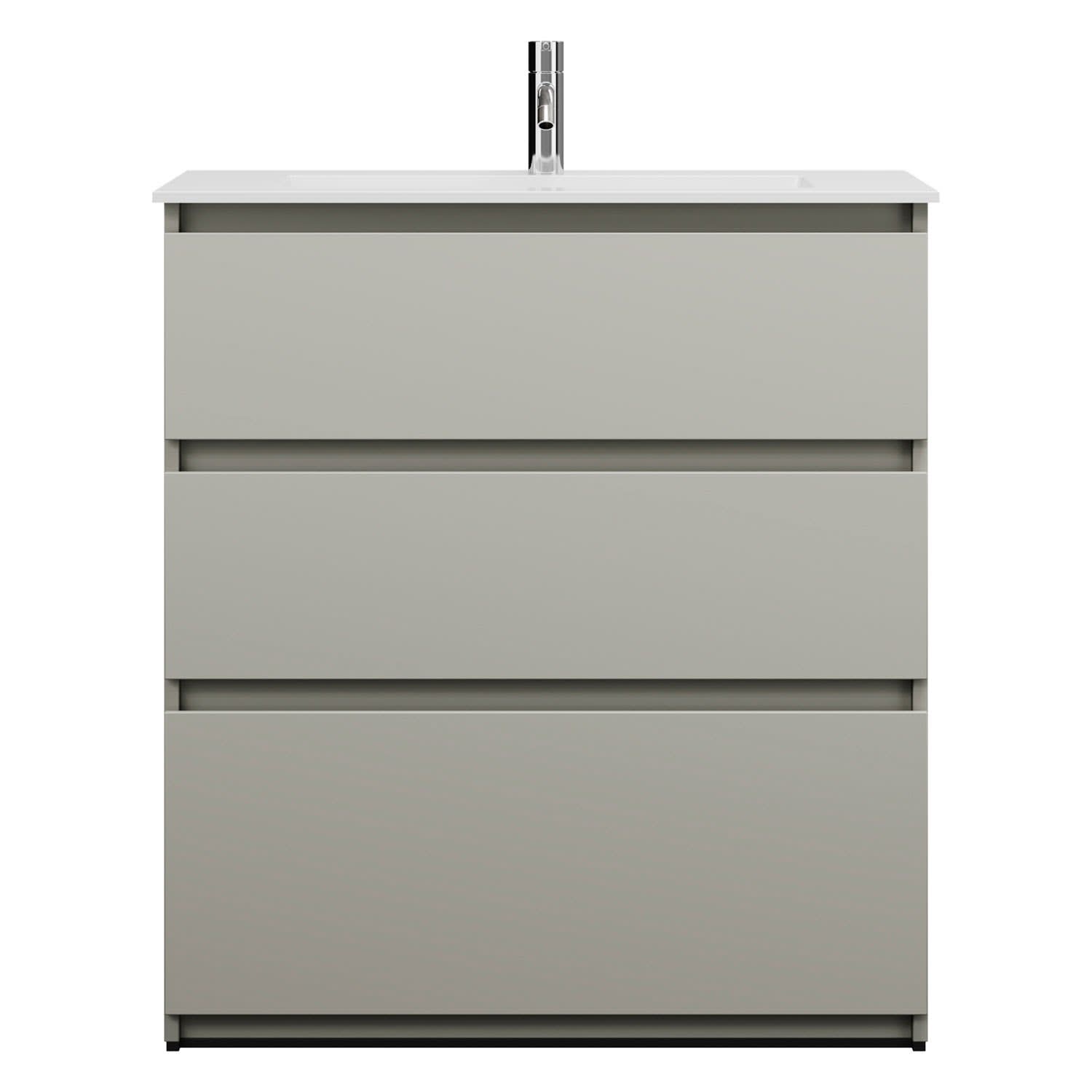 burgbad Lin20 Waschtischunterschrank mit Mineralguss-Waschtisch 82 cm, 3 Auszüge