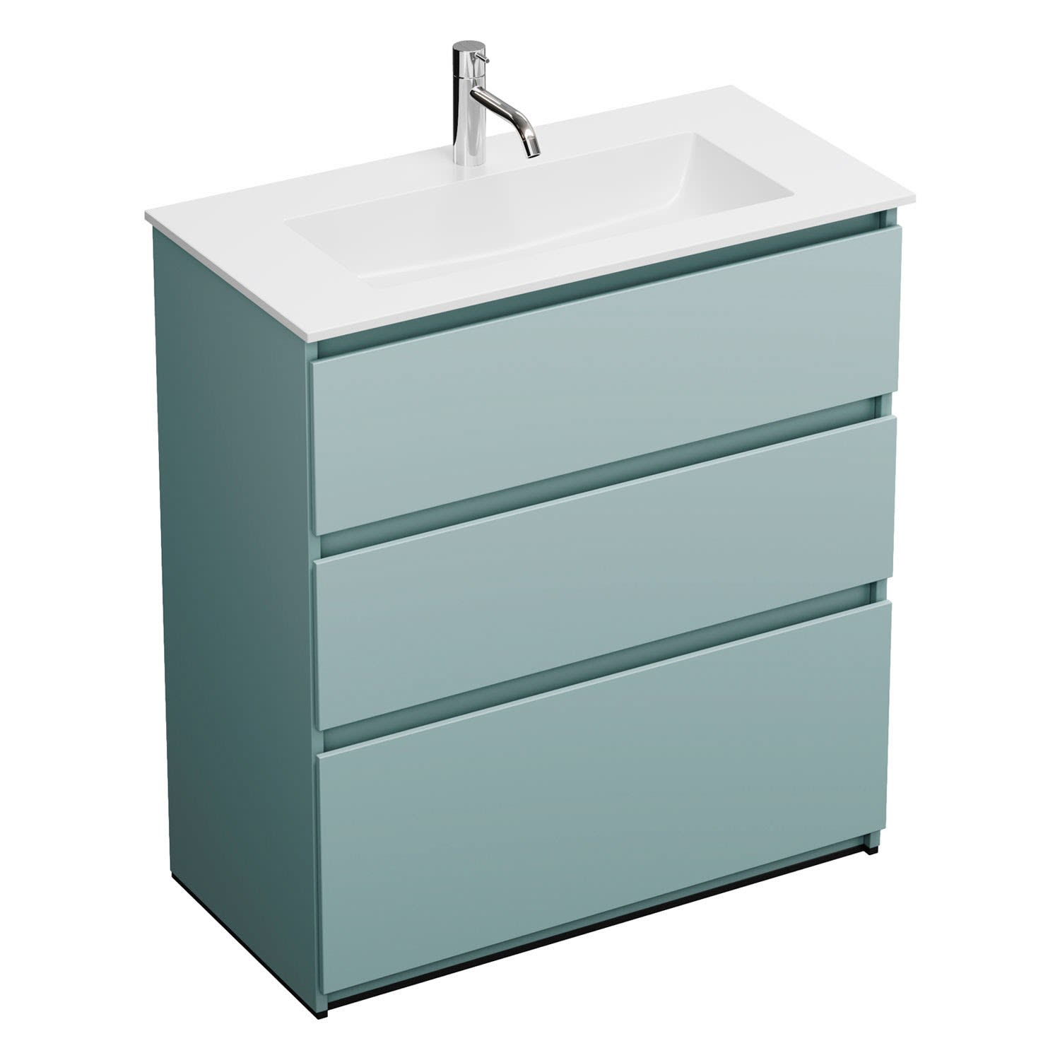 burgbad Lin20 Waschtischunterschrank mit Mineralguss-Waschtisch 82 cm, 3 Auszüge