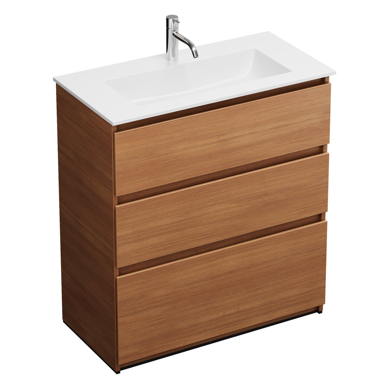 burgbad Lin20 Waschtischunterschrank mit Mineralguss-Waschtisch 82 cm, 3 Auszüge