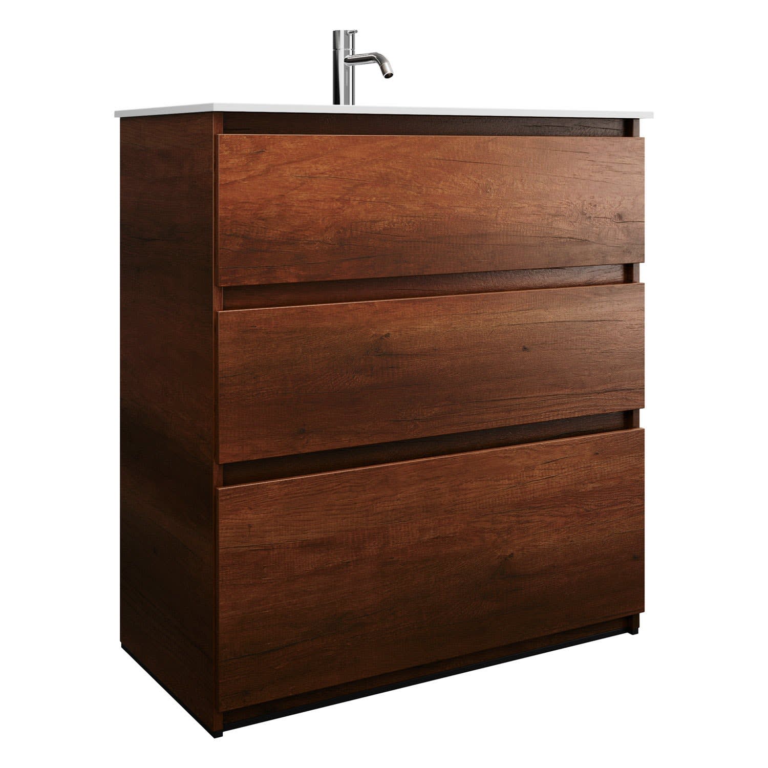 burgbad Lin20 Waschtischunterschrank mit Mineralguss-Waschtisch 82 cm, 3 Auszüge