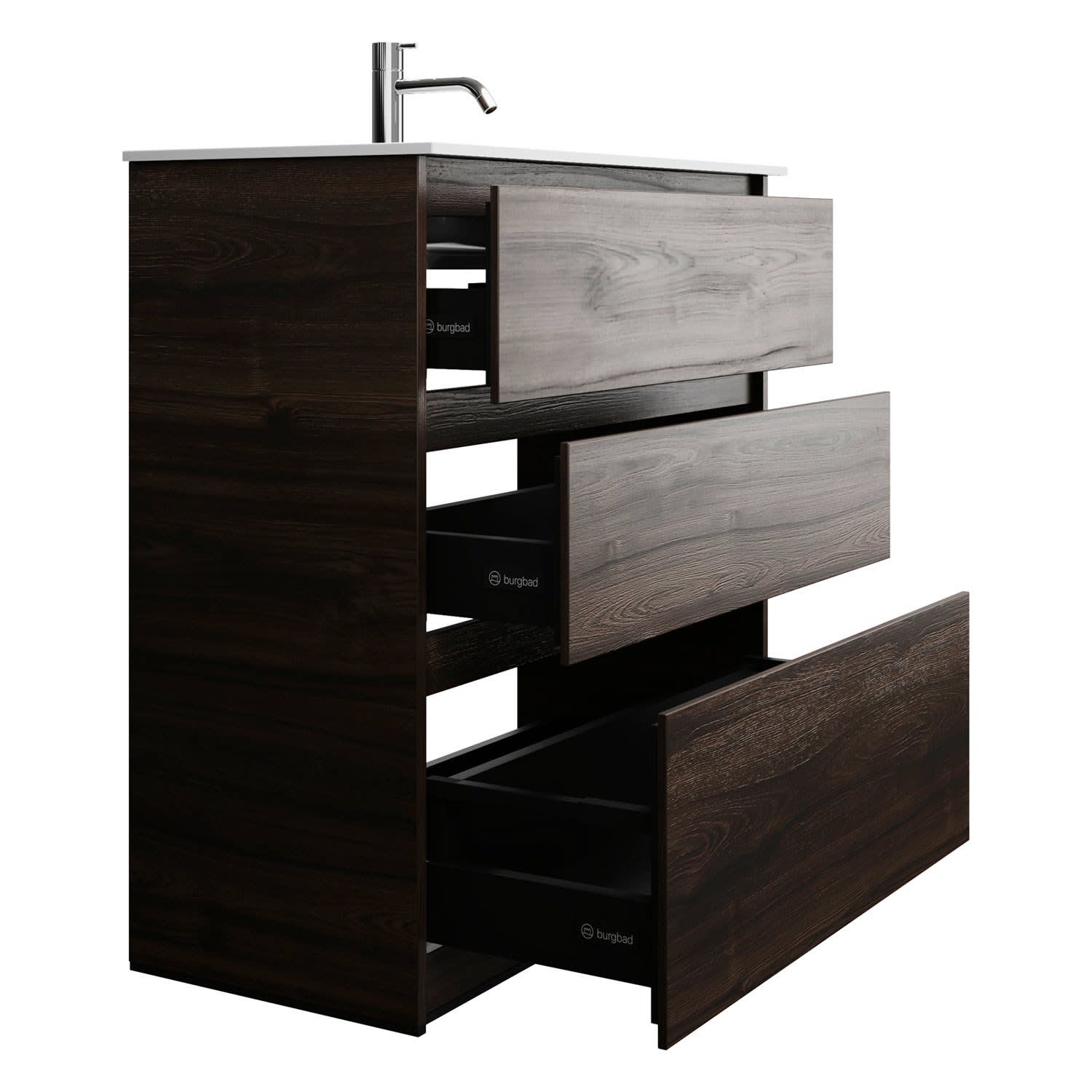 burgbad Lin20 Waschtischunterschrank mit Mineralguss-Waschtisch 82 cm, 3 Auszüge