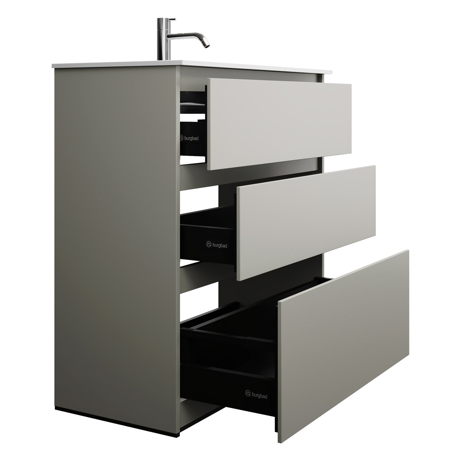 burgbad Lin20 Waschtischunterschrank mit Mineralguss-Waschtisch 82 cm, 3 Auszüge