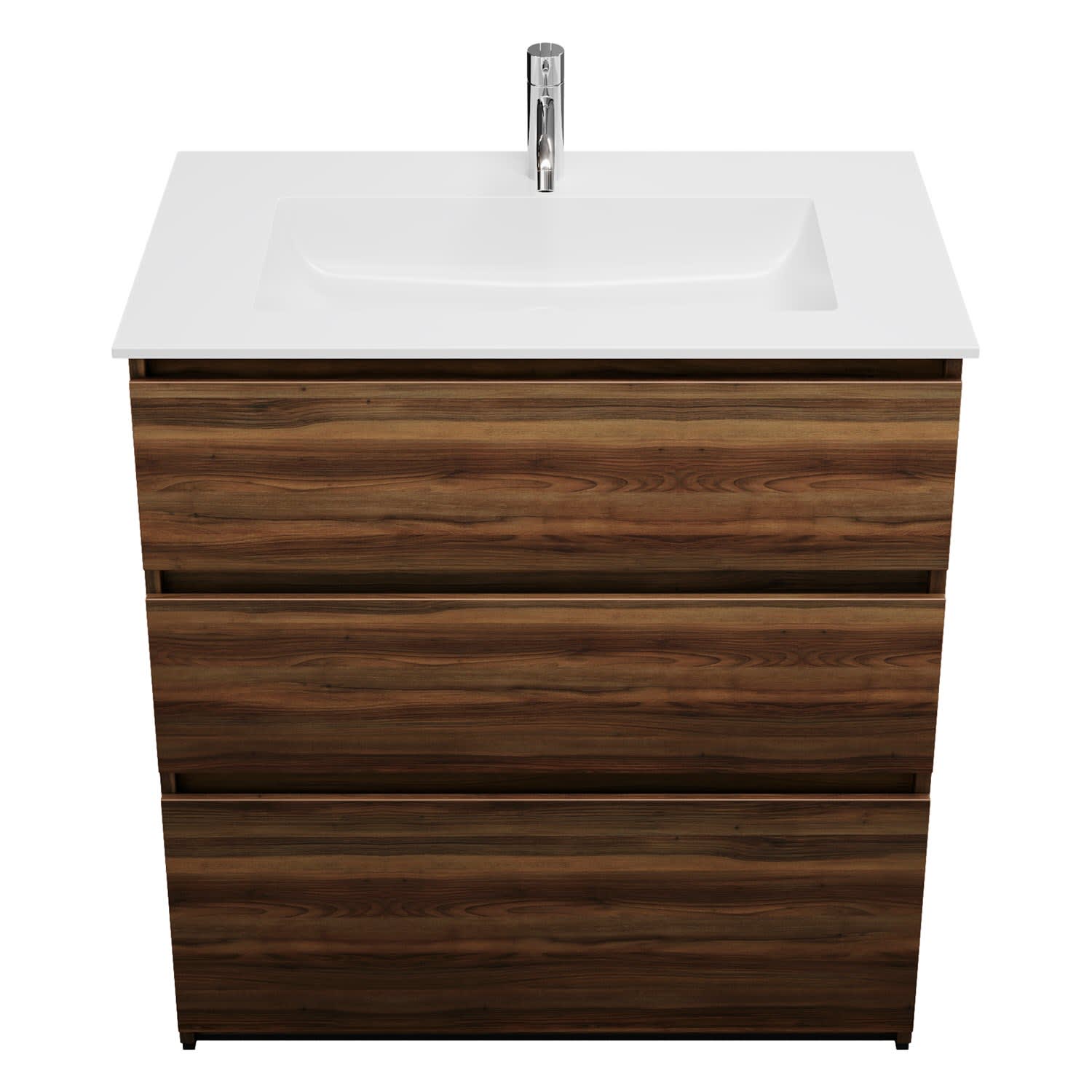 burgbad Lin20 Waschtischunterschrank mit Mineralguss-Waschtisch 82 cm, 3 Auszüge