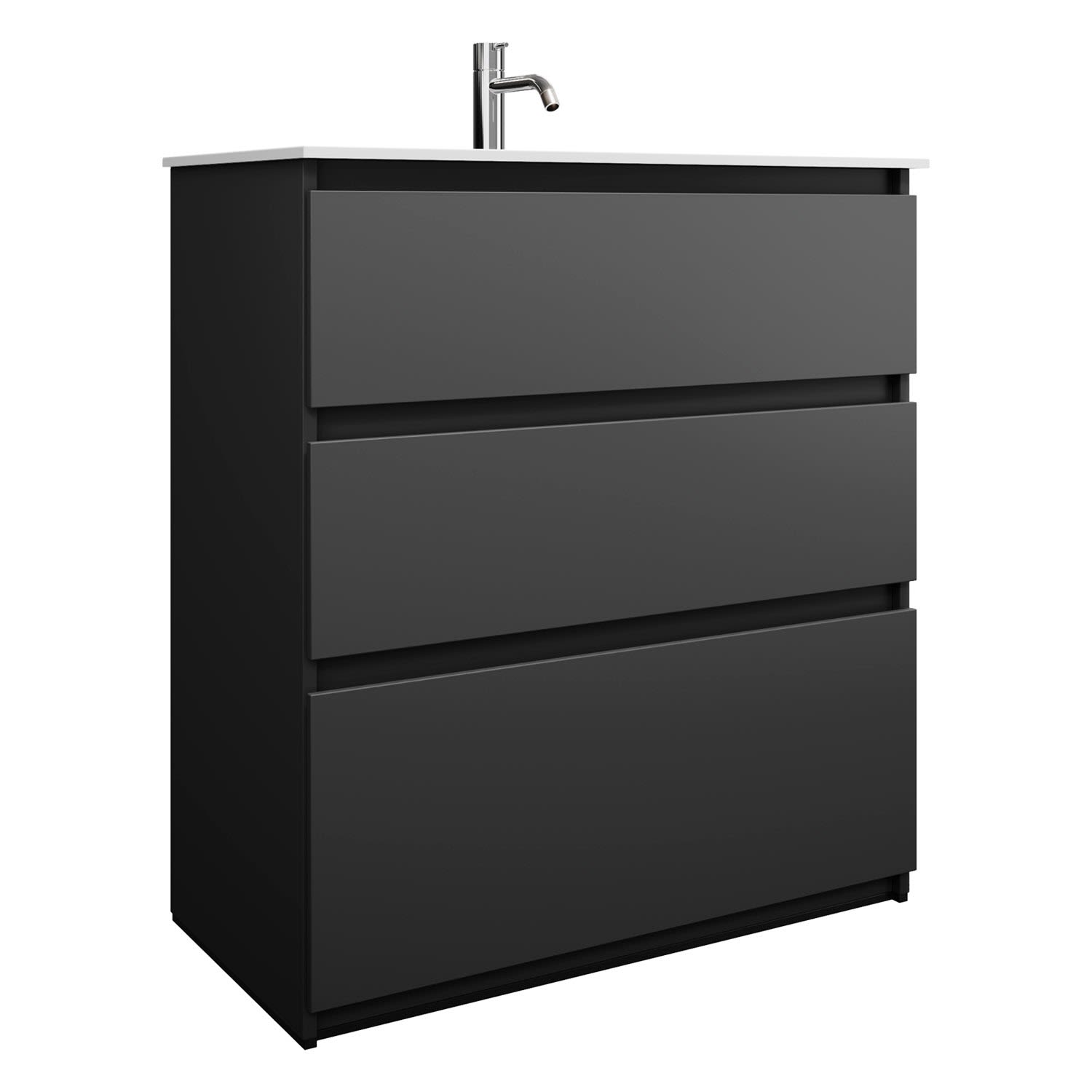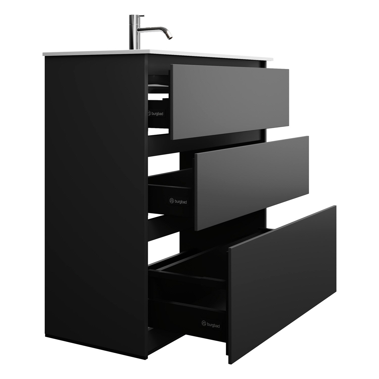 burgbad Lin20 Waschtischunterschrank mit Mineralguss-Waschtisch 82 cm, 3 Auszüge