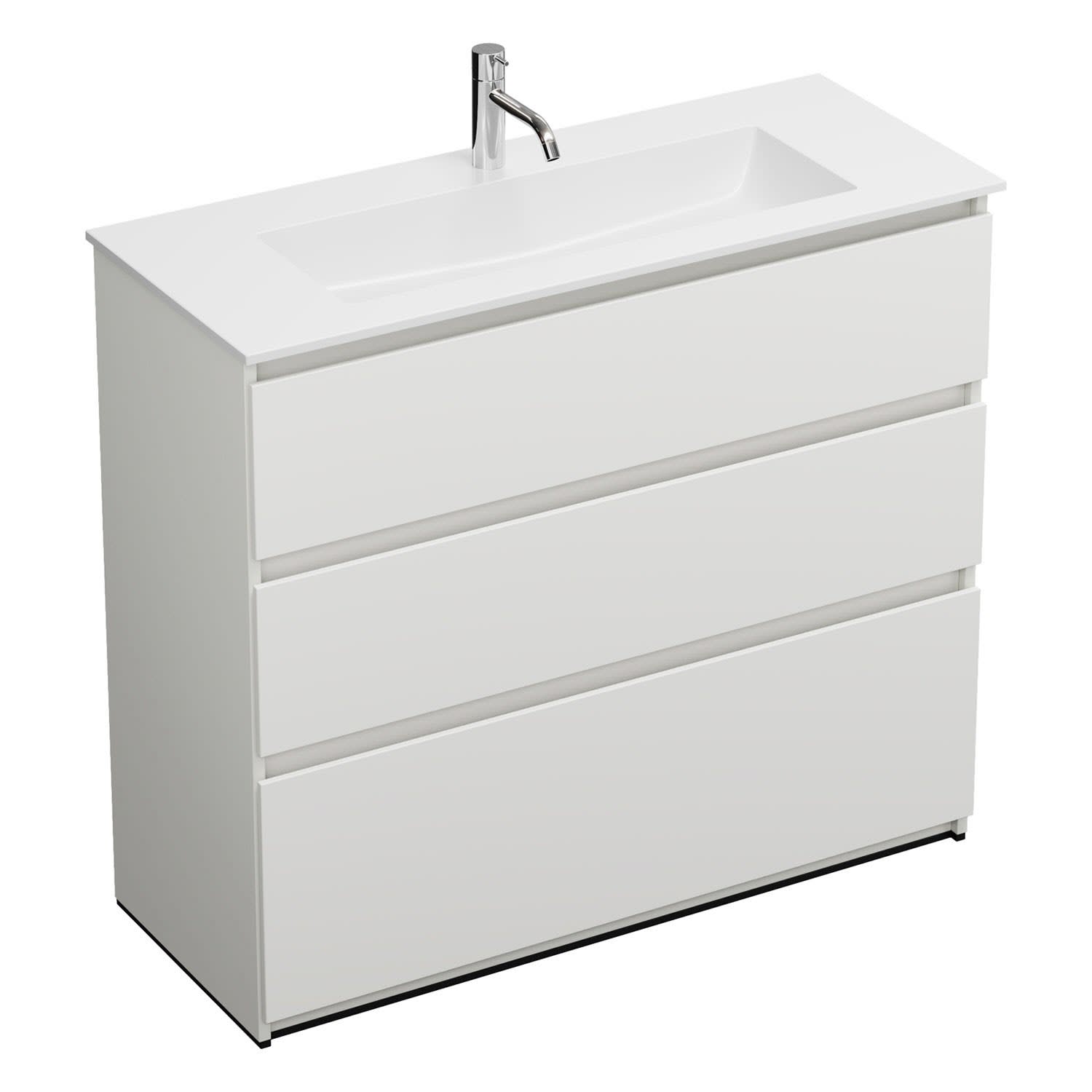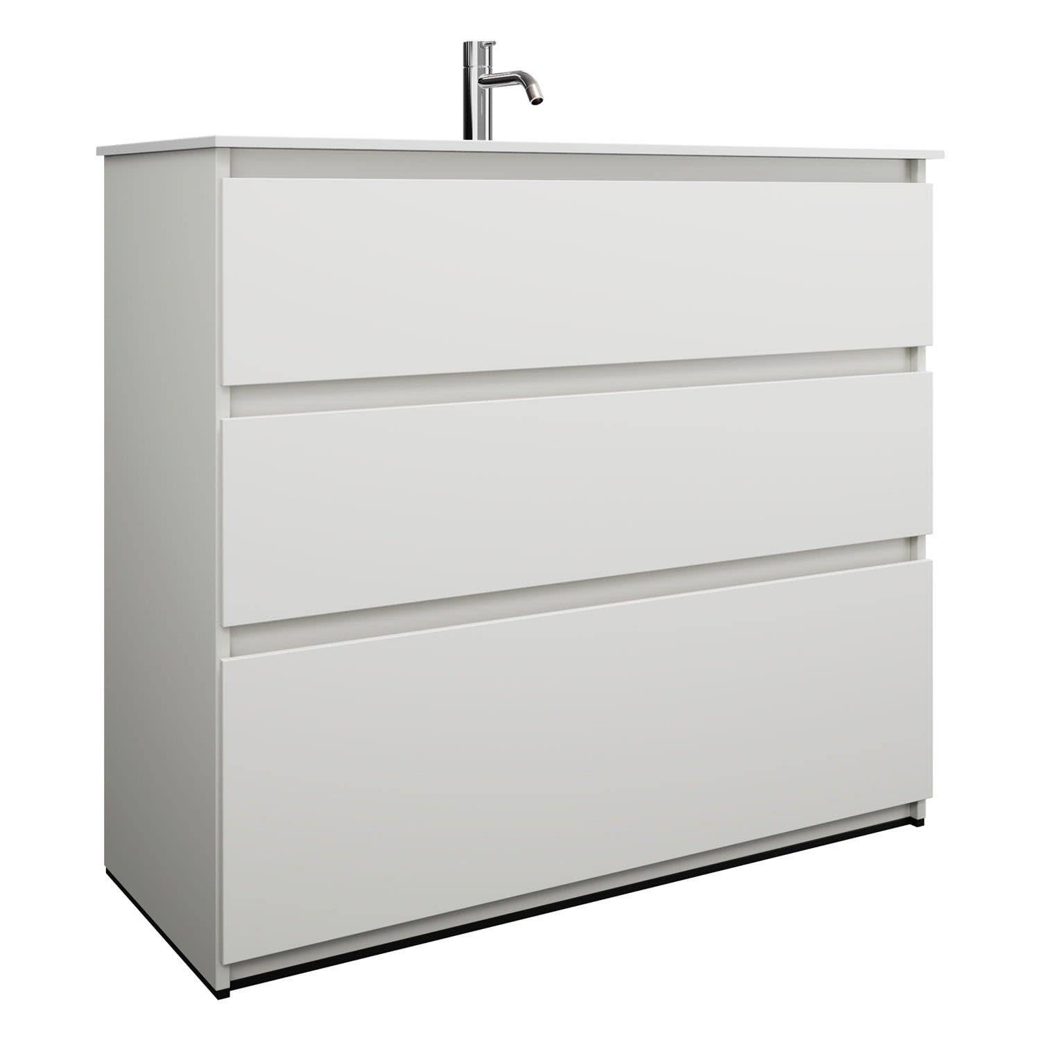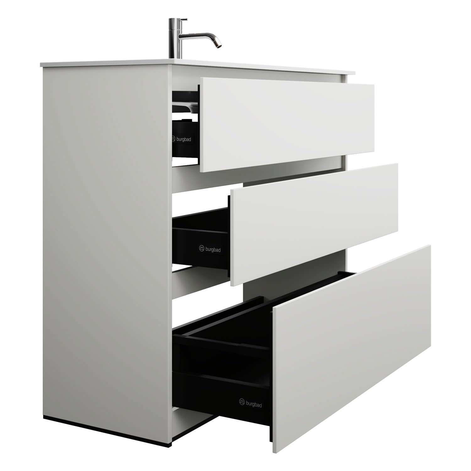 burgbad Lin20 Waschtischunterschrank mit Mineralguss-Waschtisch 102 cm, 3 Auszüge