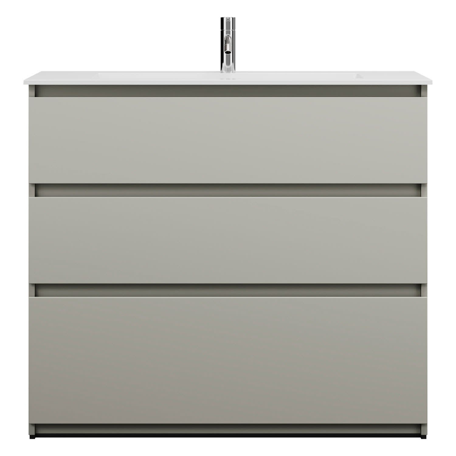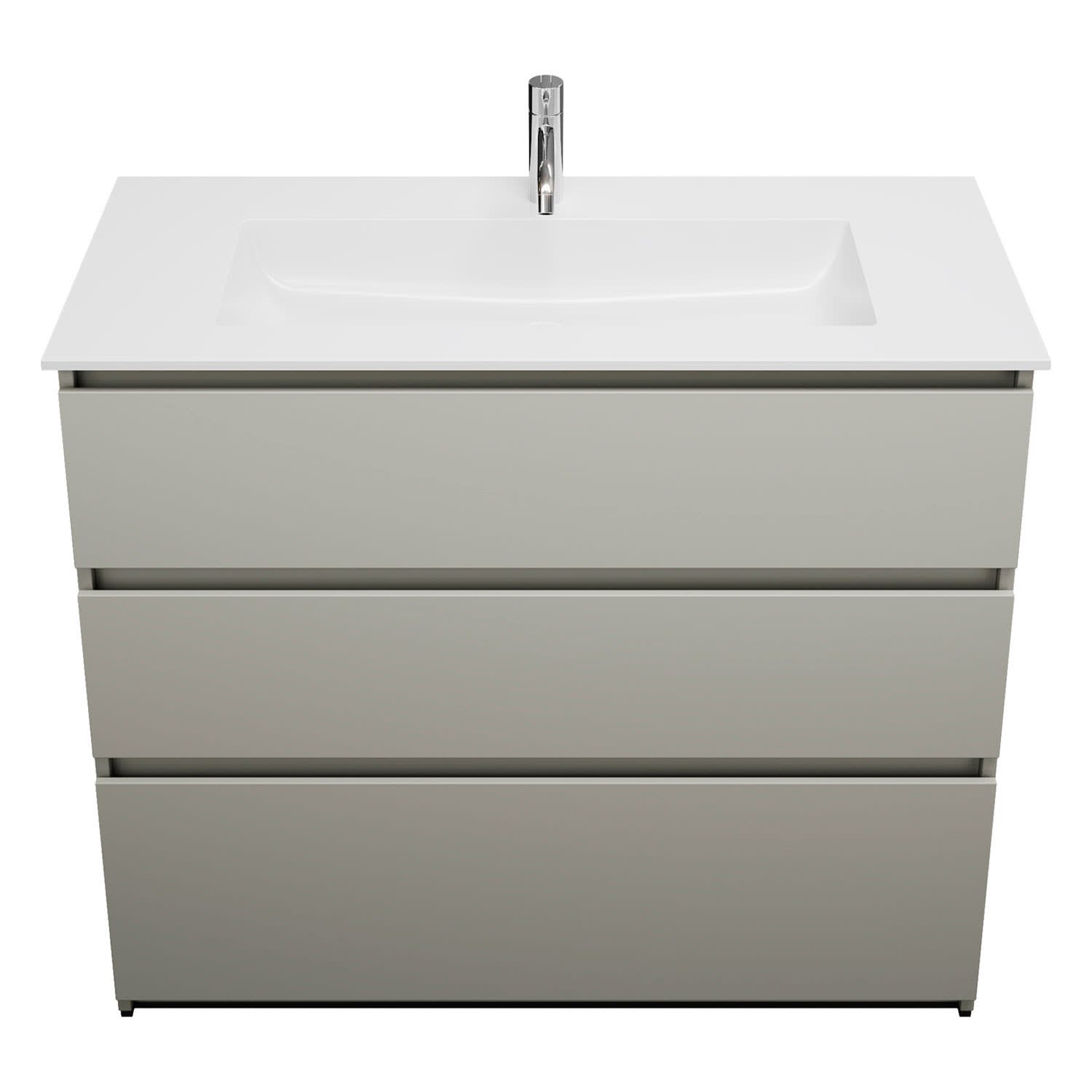 burgbad Lin20 Waschtischunterschrank mit Mineralguss-Waschtisch 102 cm, 3 Auszüge