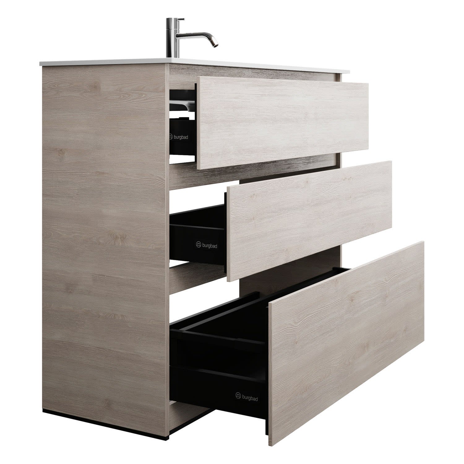 burgbad Lin20 Waschtischunterschrank mit Mineralguss-Waschtisch 102 cm, 3 Auszüge