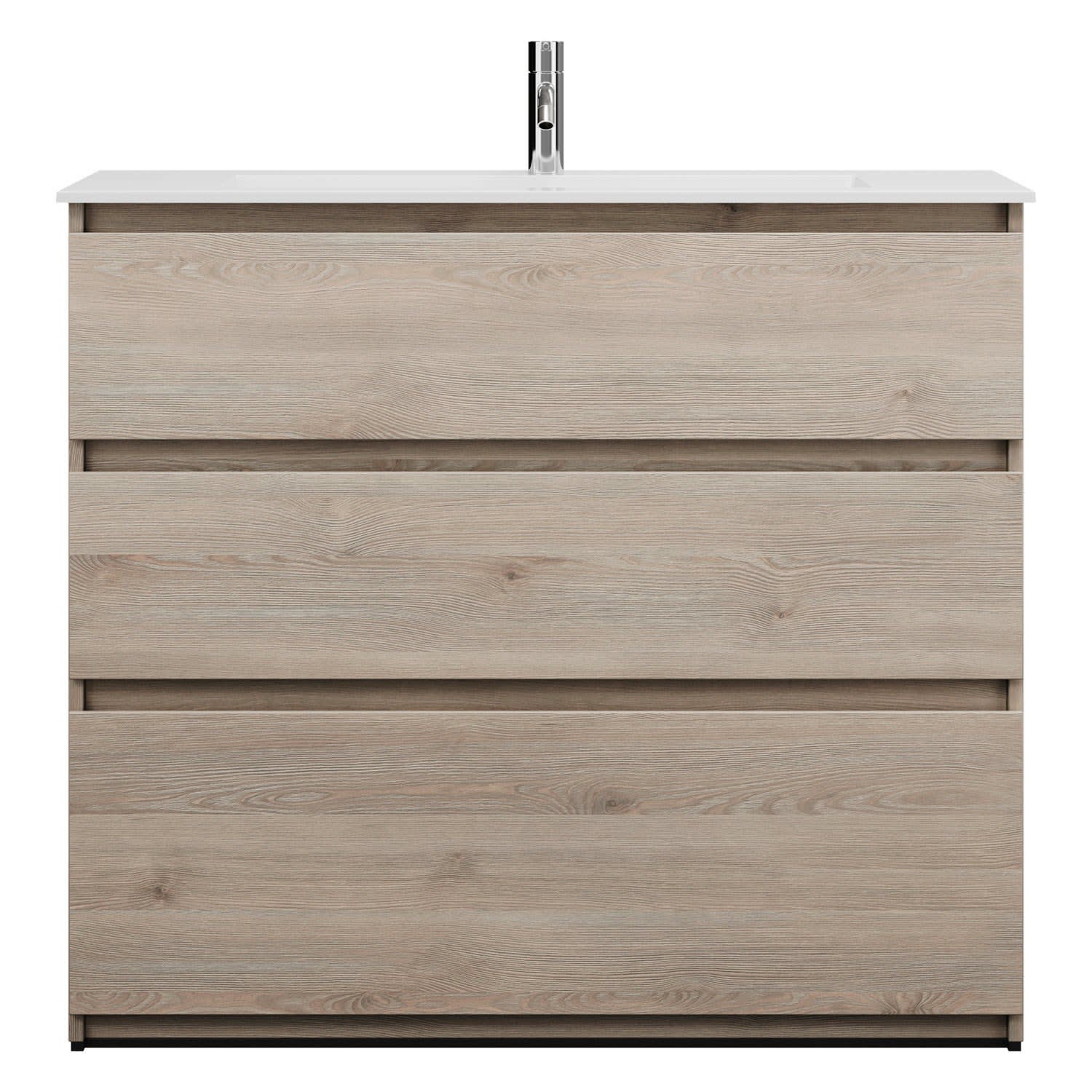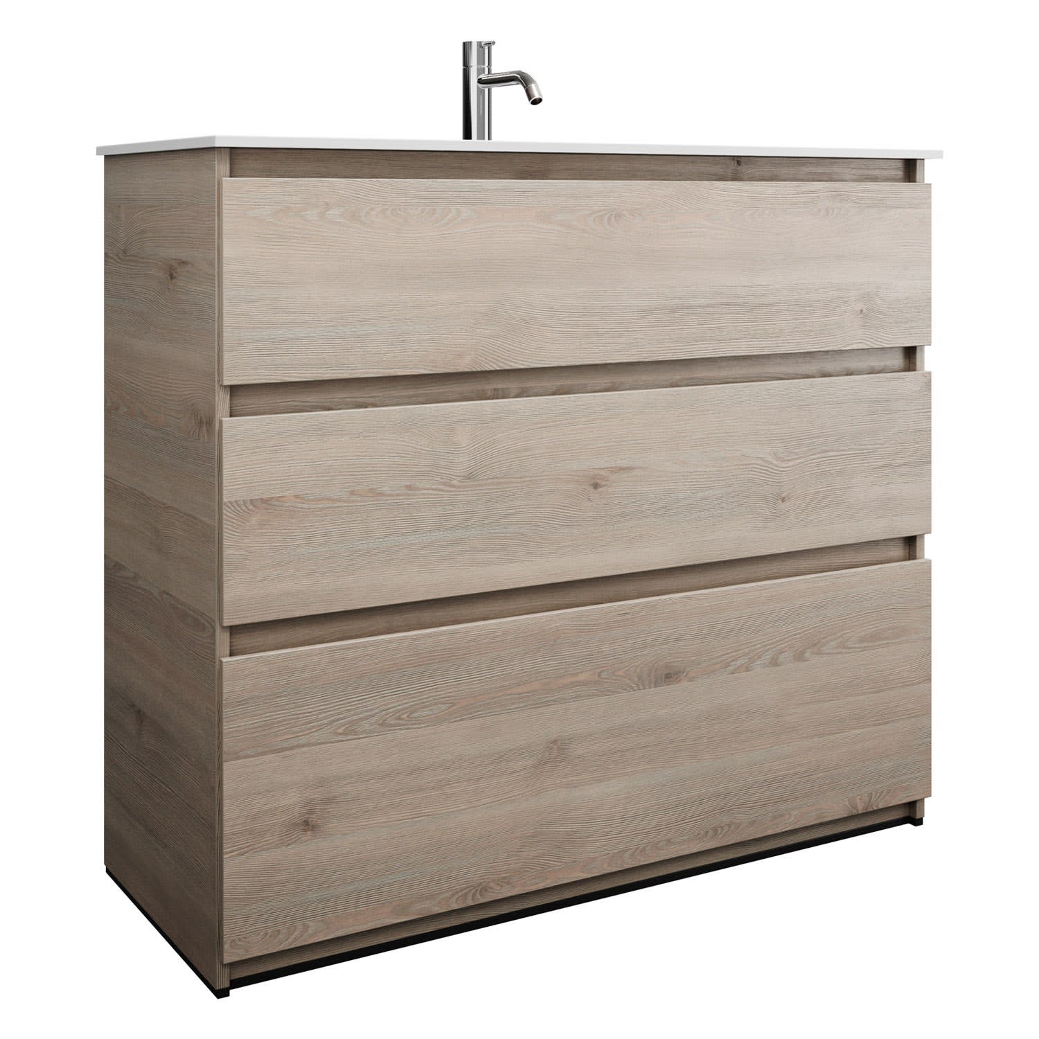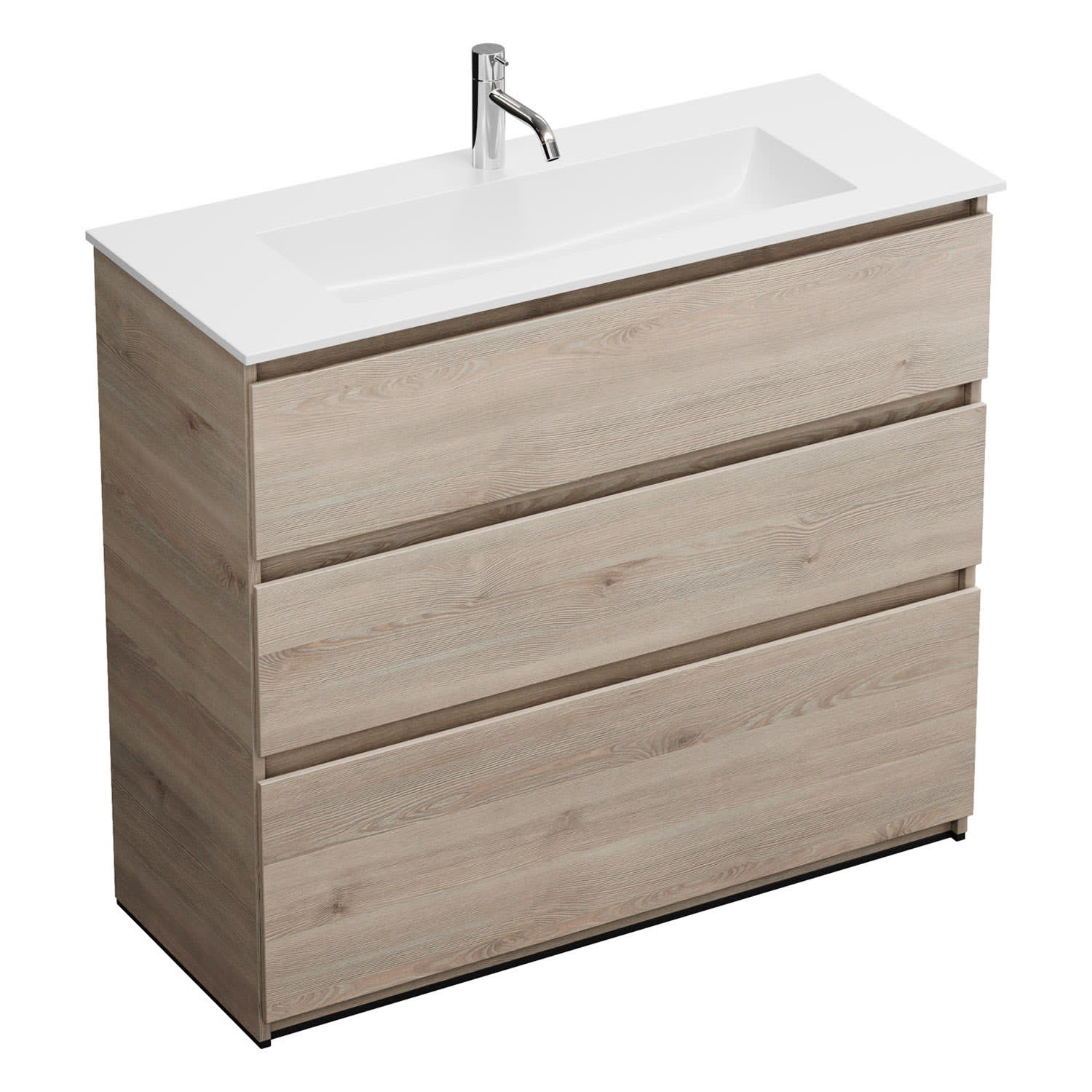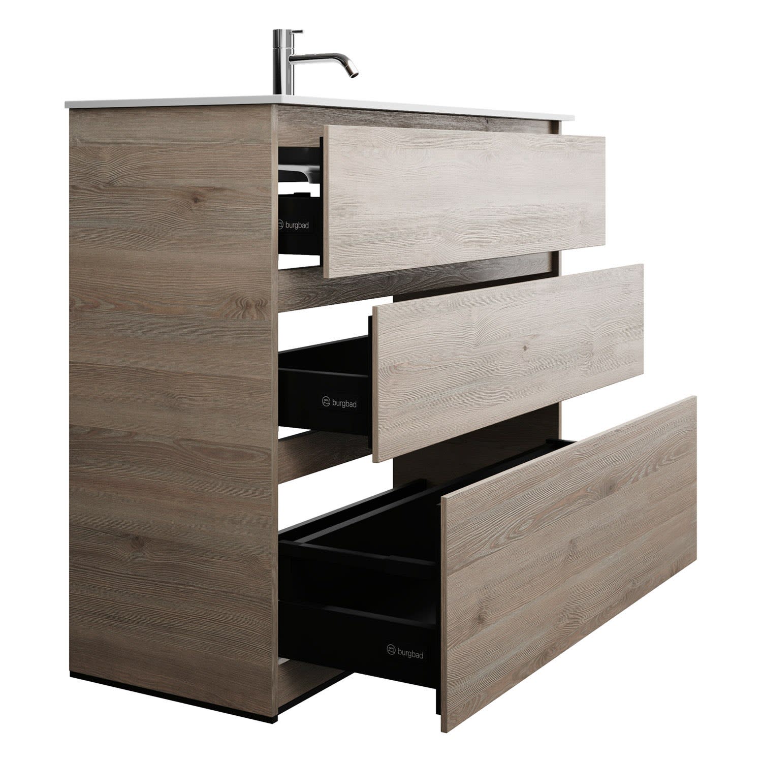 burgbad Lin20 Waschtischunterschrank mit Mineralguss-Waschtisch 102 cm, 3 Auszüge