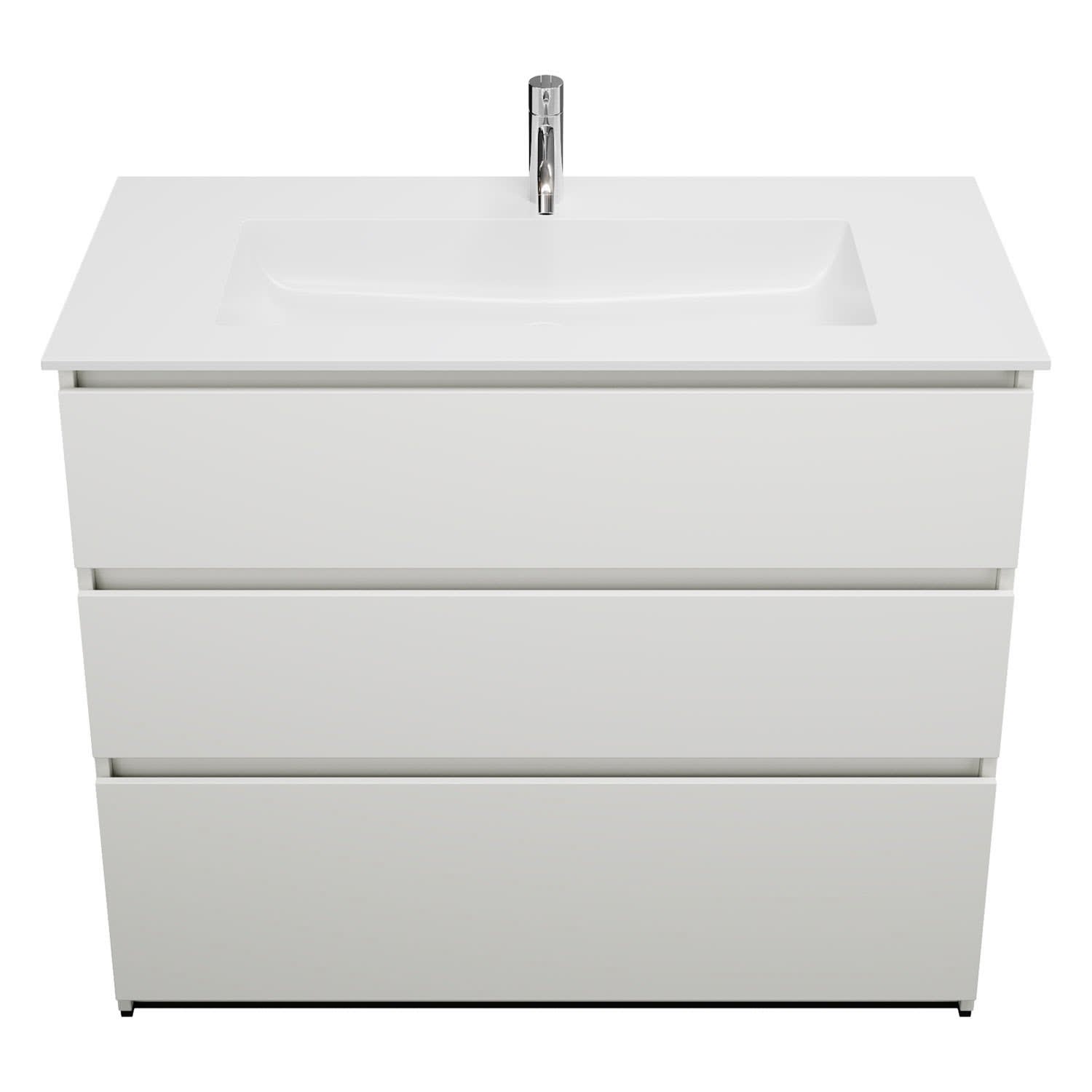 burgbad Lin20 Waschtischunterschrank mit Mineralguss-Waschtisch 102 cm, 3 Auszüge
