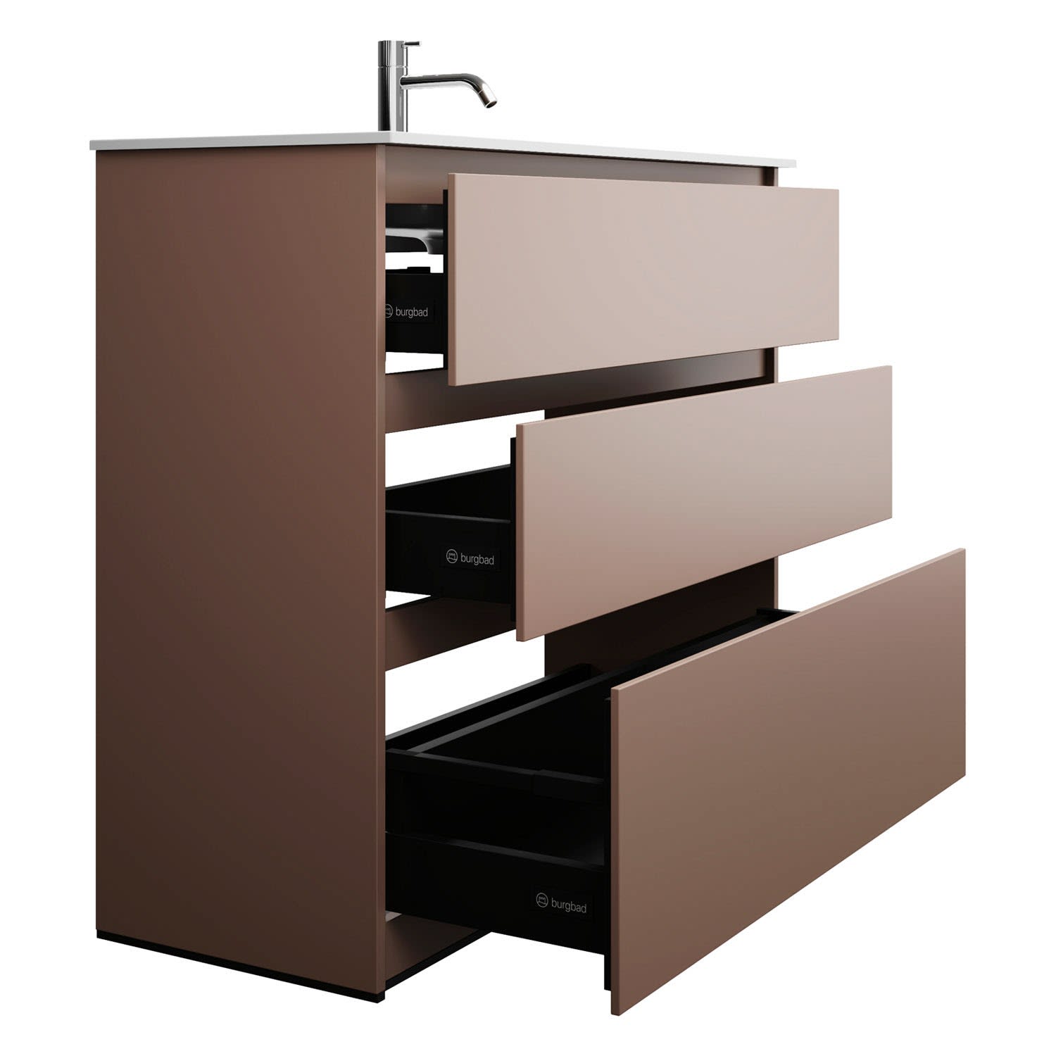 burgbad Lin20 Waschtischunterschrank mit Mineralguss-Waschtisch 102 cm, 3 Auszüge