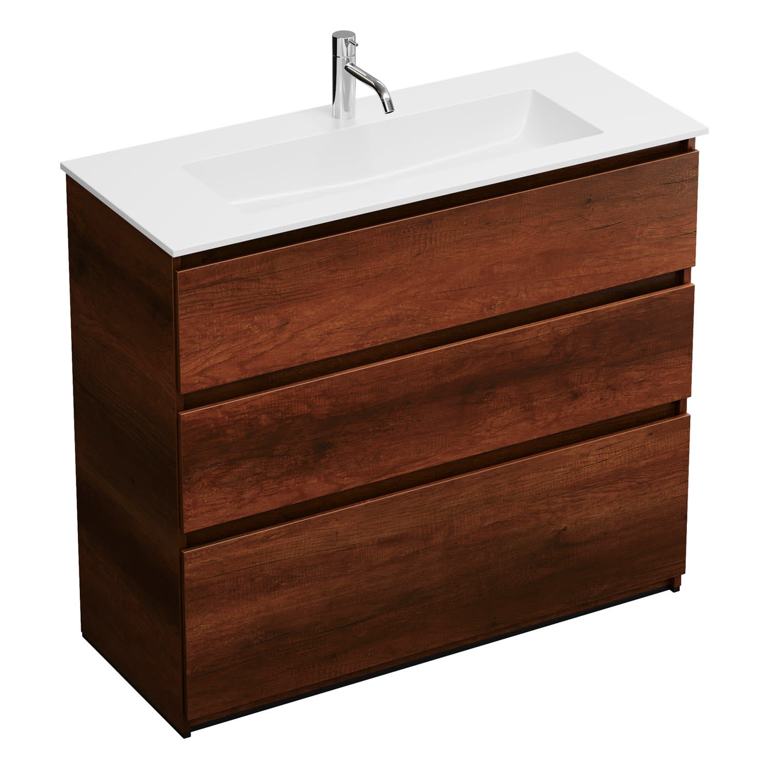 burgbad Lin20 Waschtischunterschrank mit Mineralguss-Waschtisch 102 cm, 3 Auszüge
