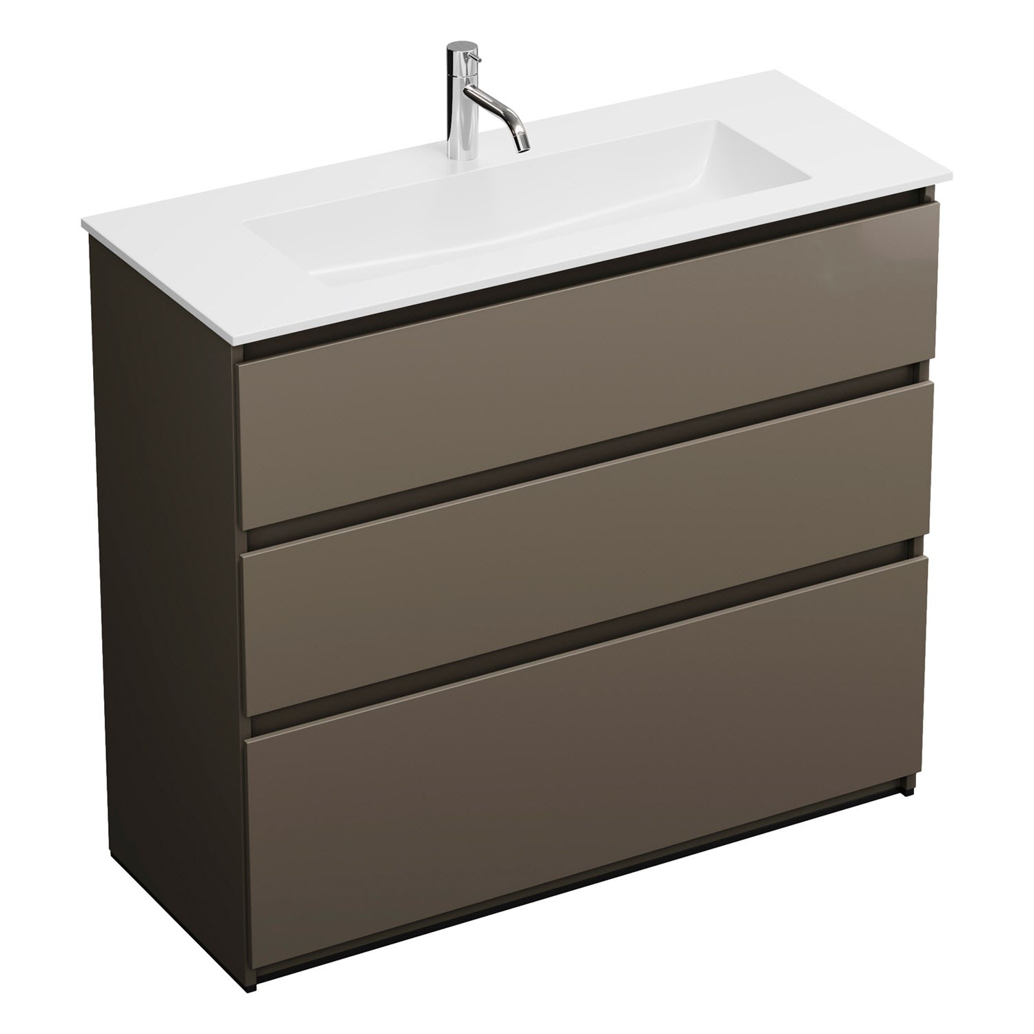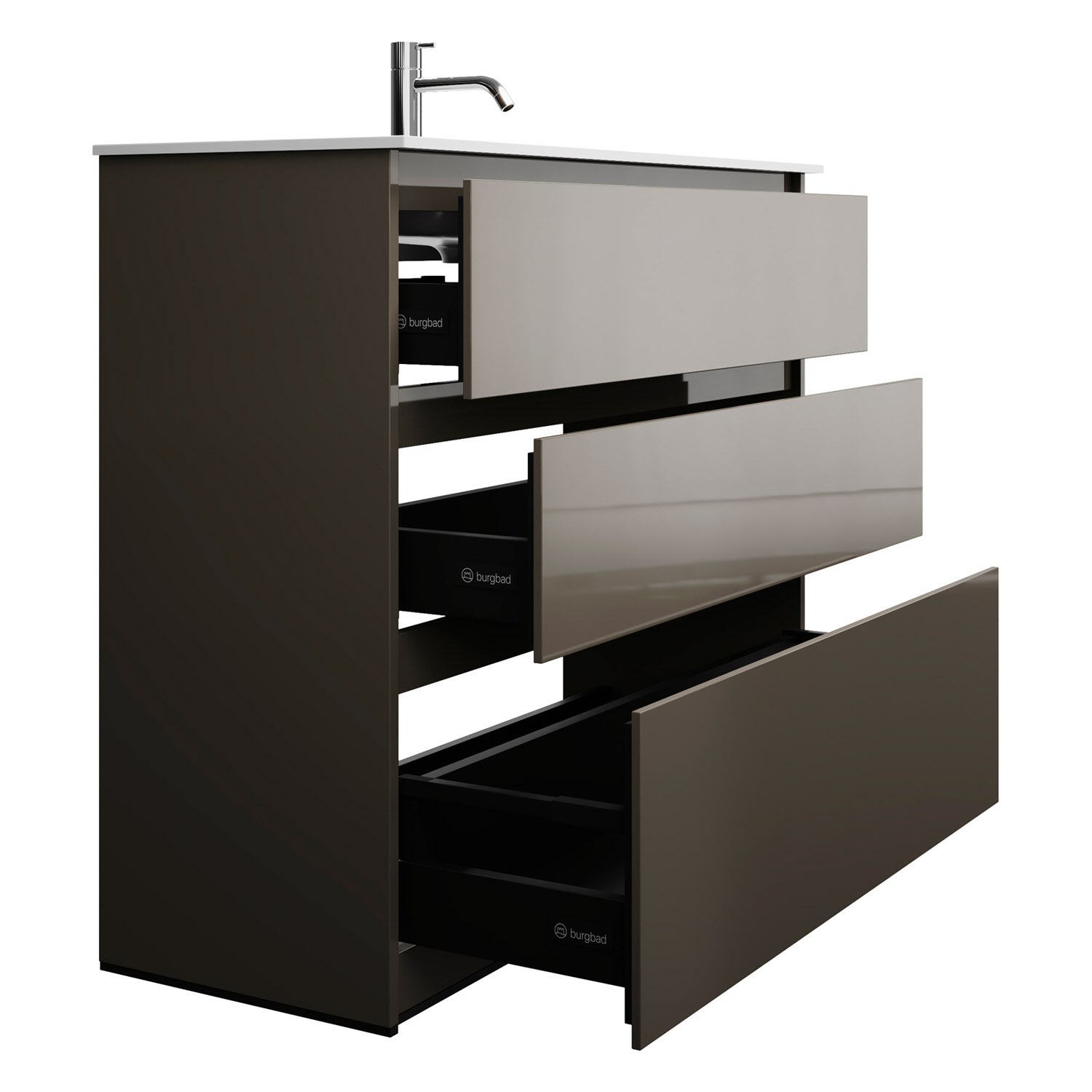 burgbad Lin20 Waschtischunterschrank mit Mineralguss-Waschtisch 102 cm, 3 Auszüge