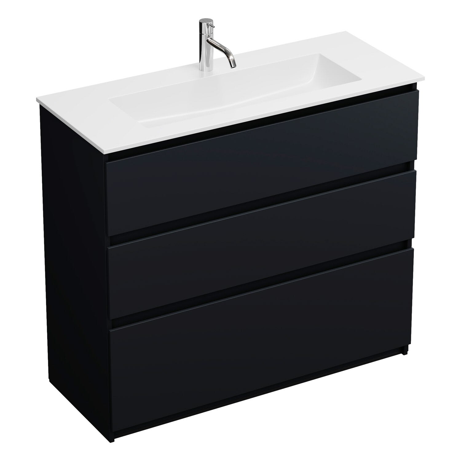 burgbad Lin20 Waschtischunterschrank mit Mineralguss-Waschtisch 102 cm, 3 Auszüge