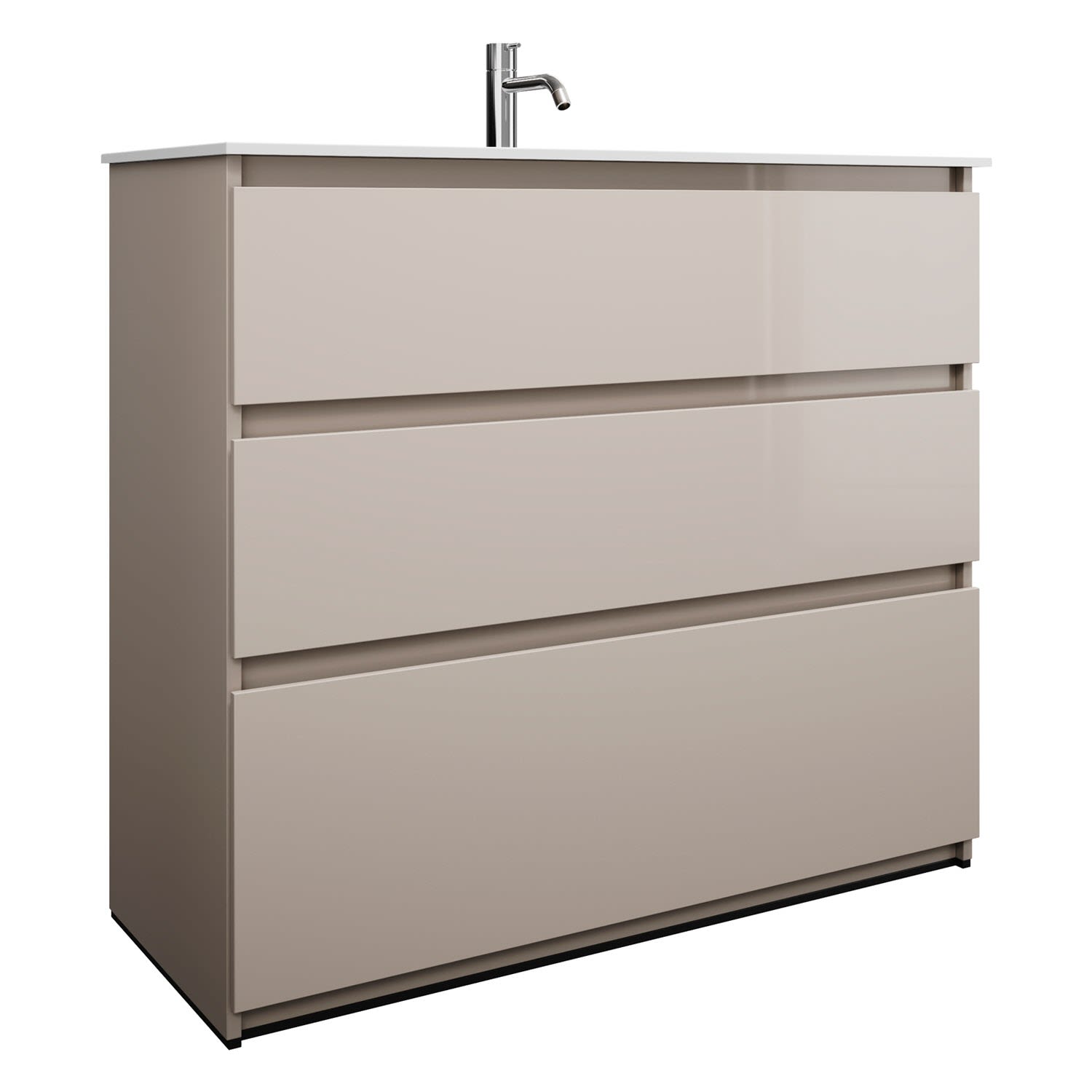burgbad Lin20 Waschtischunterschrank mit Mineralguss-Waschtisch 102 cm, 3 Auszüge