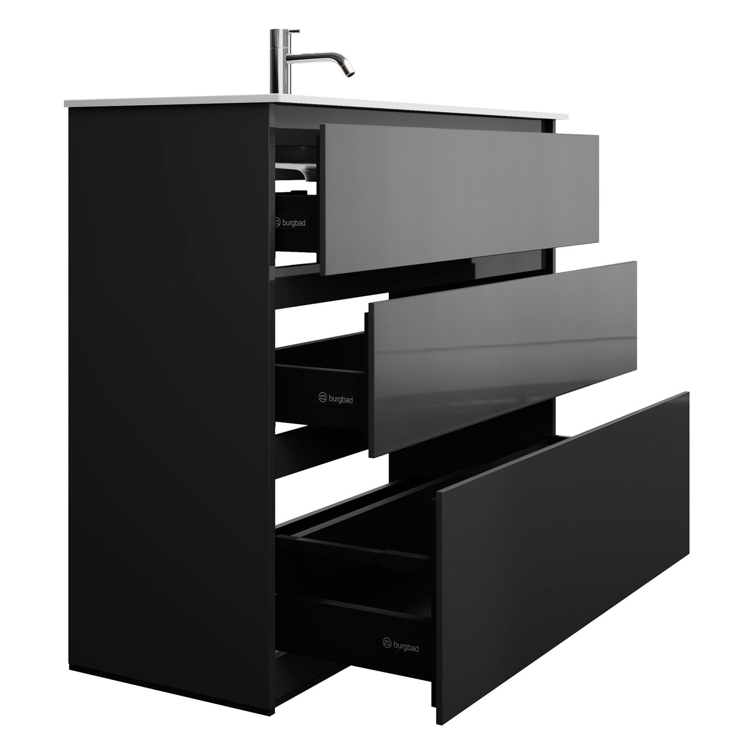 burgbad Lin20 Waschtischunterschrank mit Mineralguss-Waschtisch 102 cm, 3 Auszüge