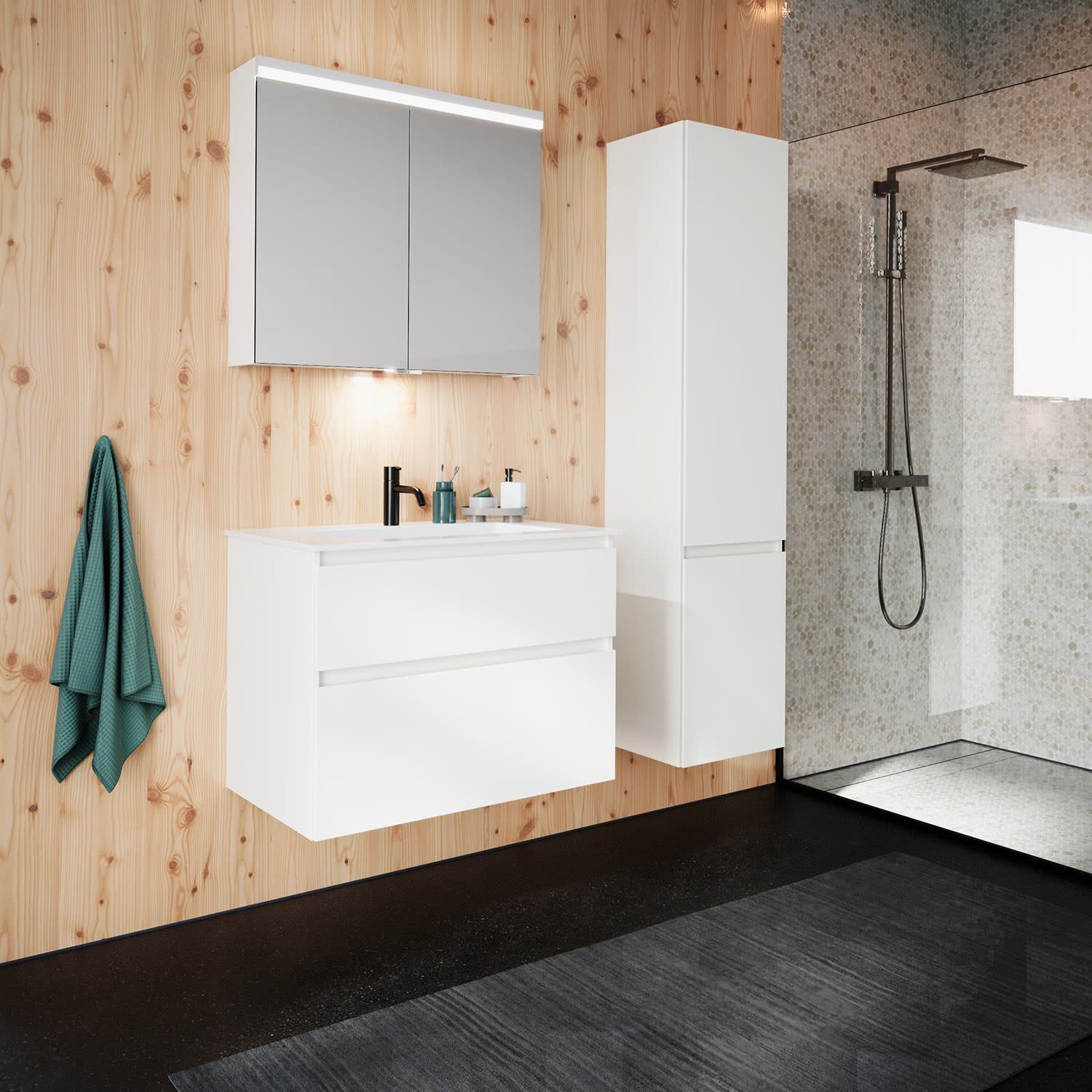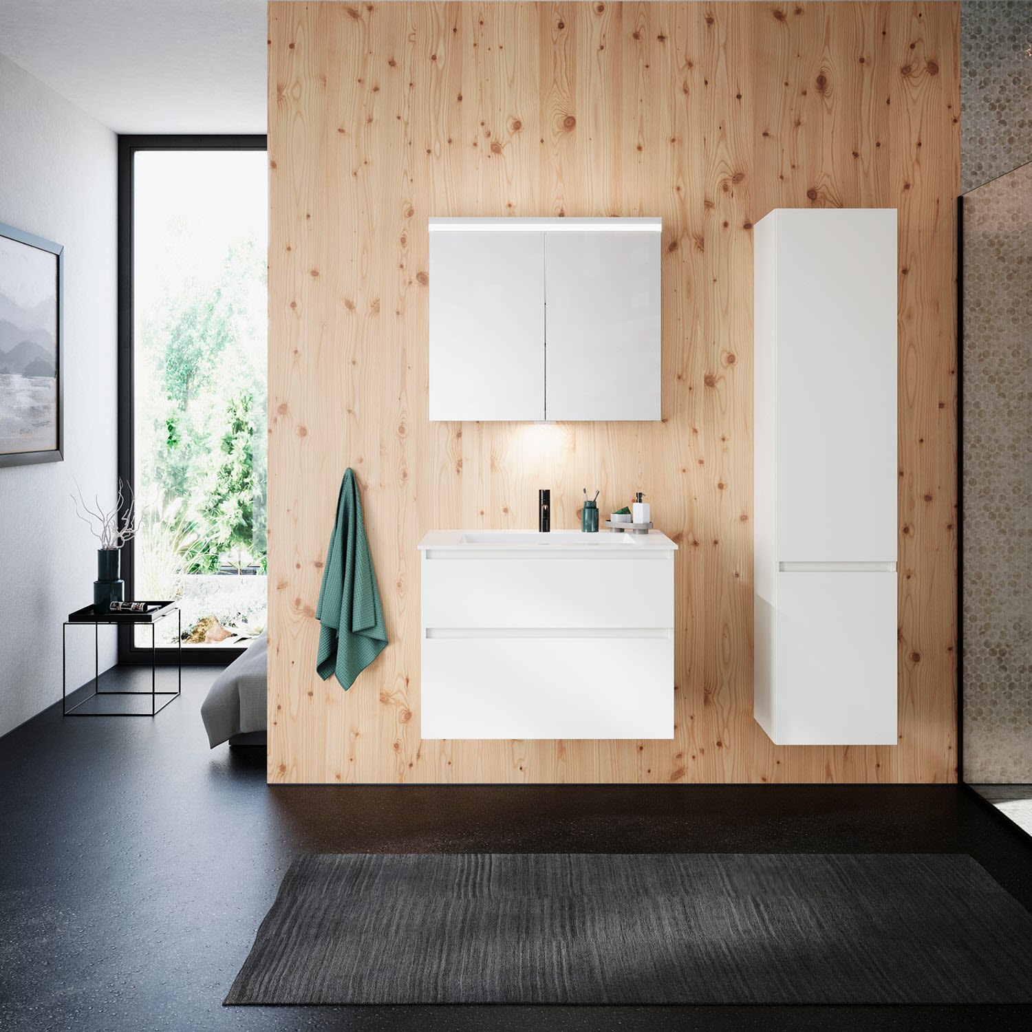 burgbad Lin20 Waschtischunterschrank mit Mineralguss-Waschtisch 82 cm, 2 Auszüge
