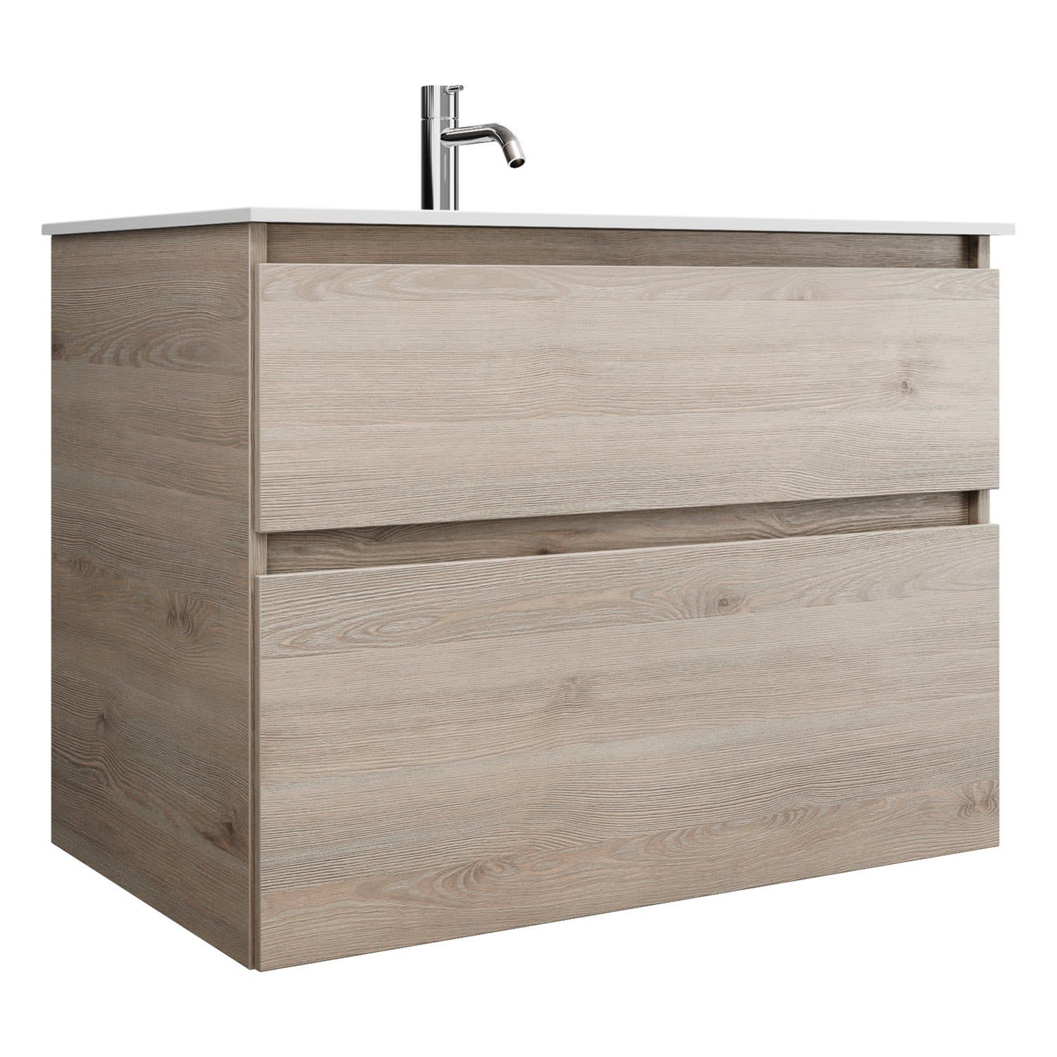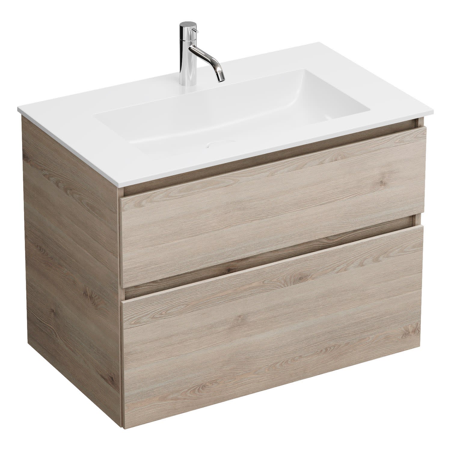 burgbad Lin20 Waschtischunterschrank mit Mineralguss-Waschtisch 82 cm, 2 Auszüge