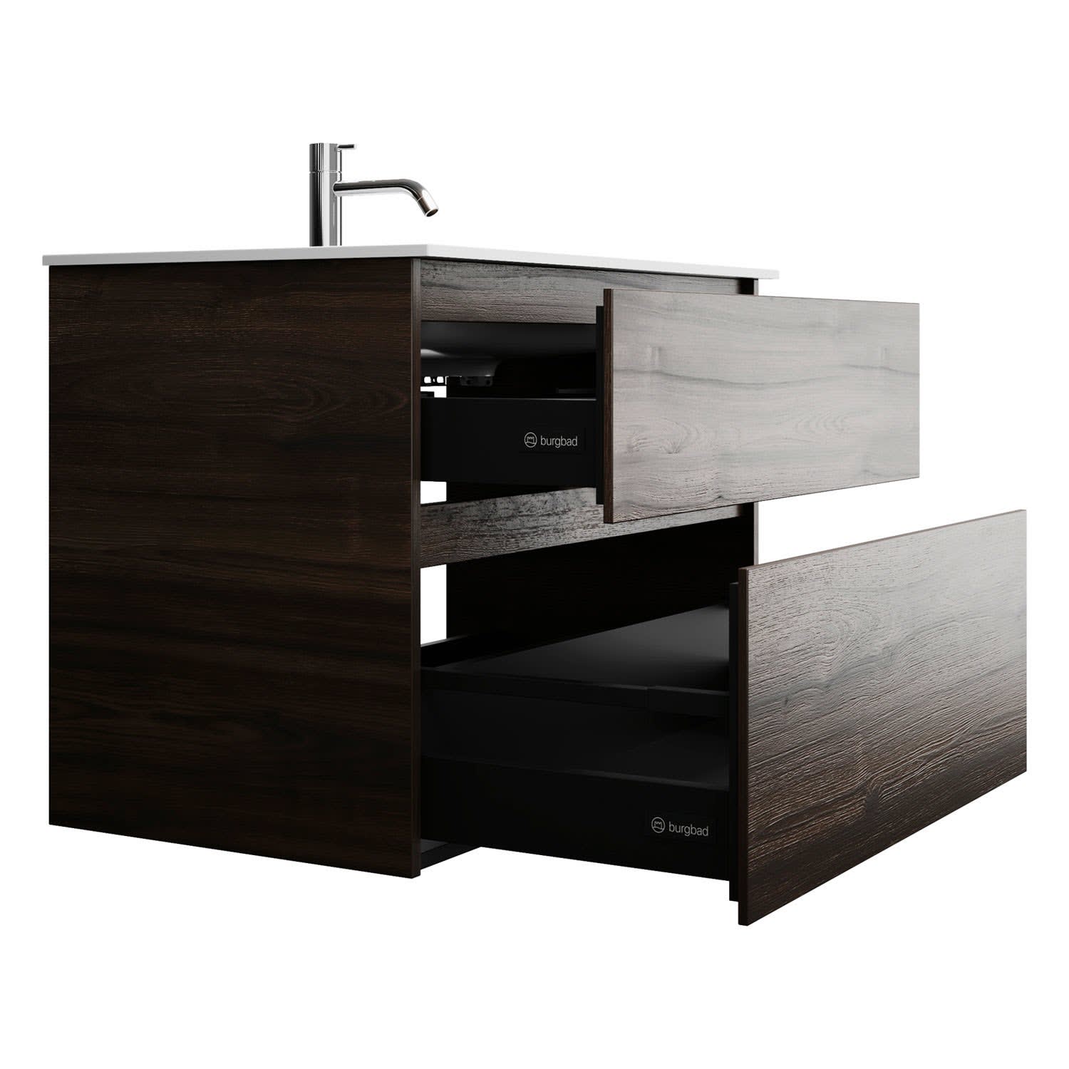 burgbad Lin20 Waschtischunterschrank mit Mineralguss-Waschtisch 82 cm, 2 Auszüge