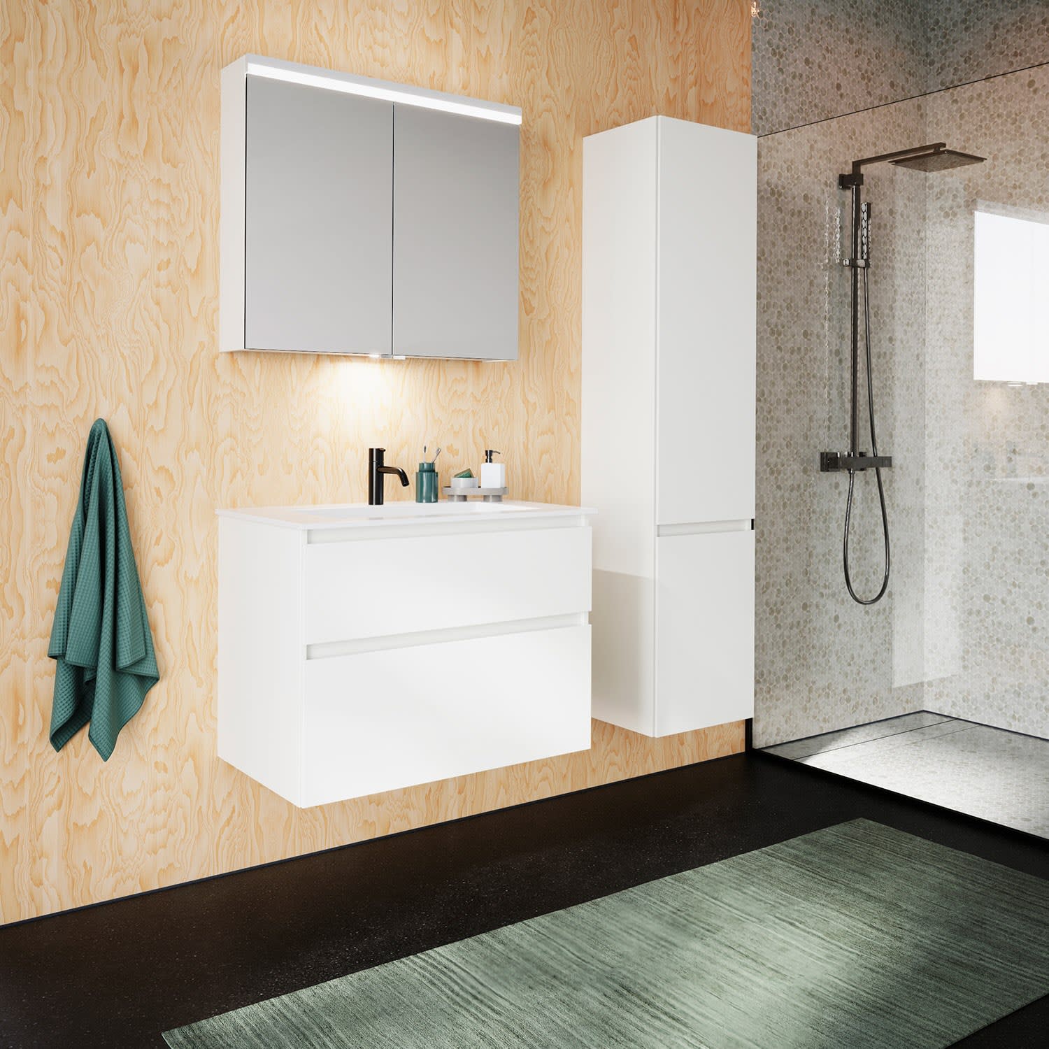 burgbad Lin20 Waschtischunterschrank mit Mineralguss-Waschtisch 82 cm, 2 Auszüge