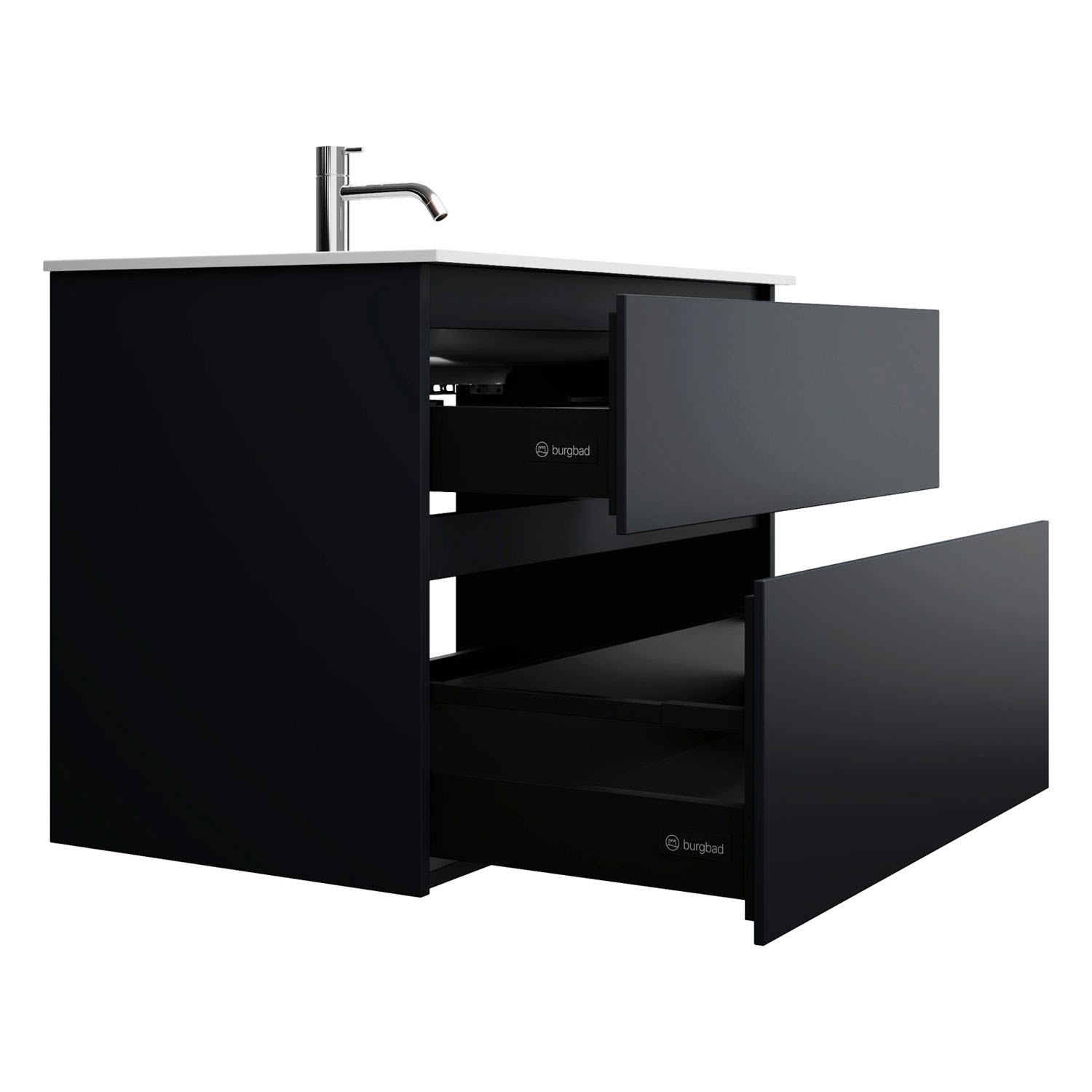 burgbad Lin20 Waschtischunterschrank mit Mineralguss-Waschtisch 82 cm, 2 Auszüge