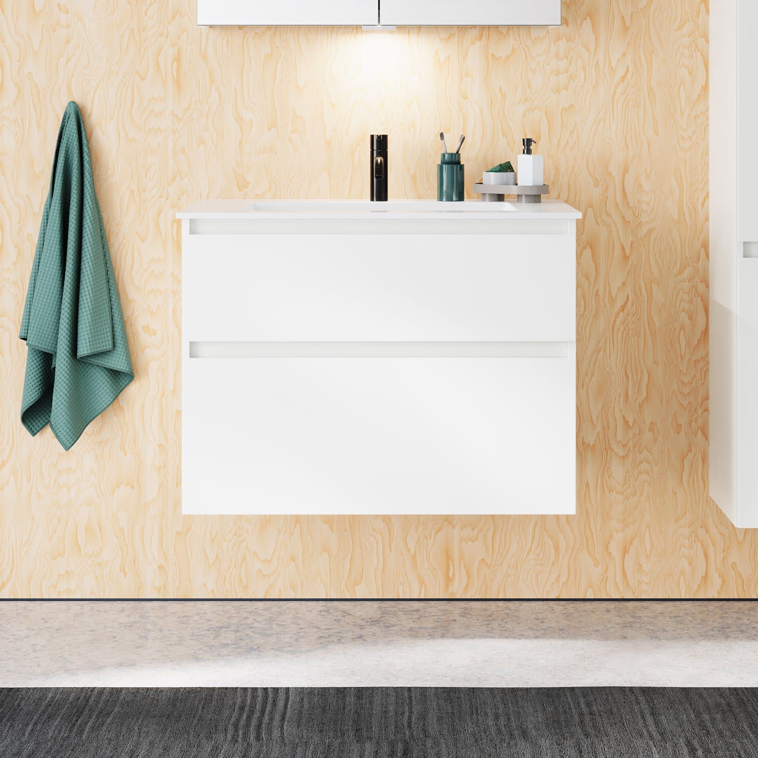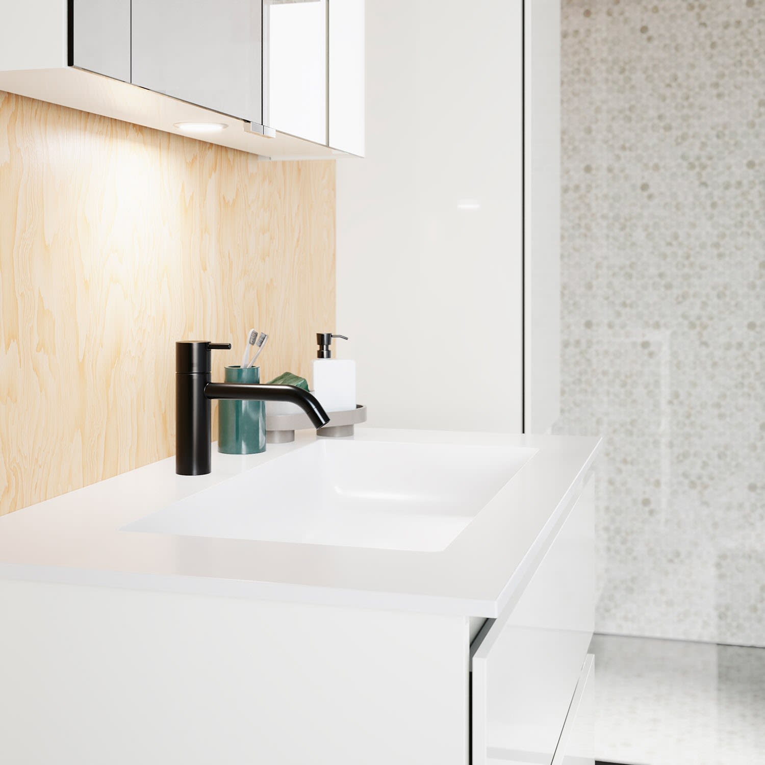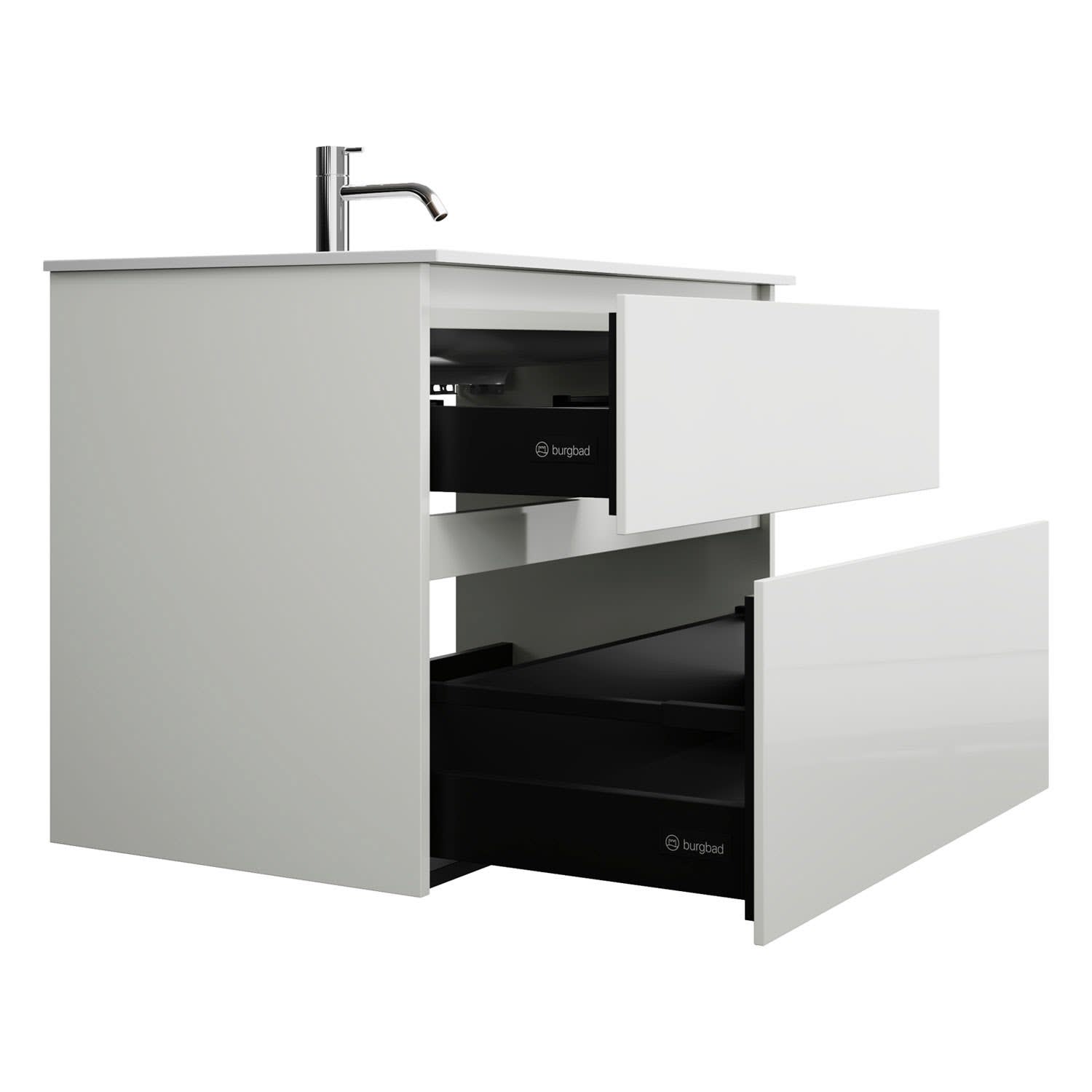 burgbad Lin20 Waschtischunterschrank mit Mineralguss-Waschtisch 82 cm, 2 Auszüge