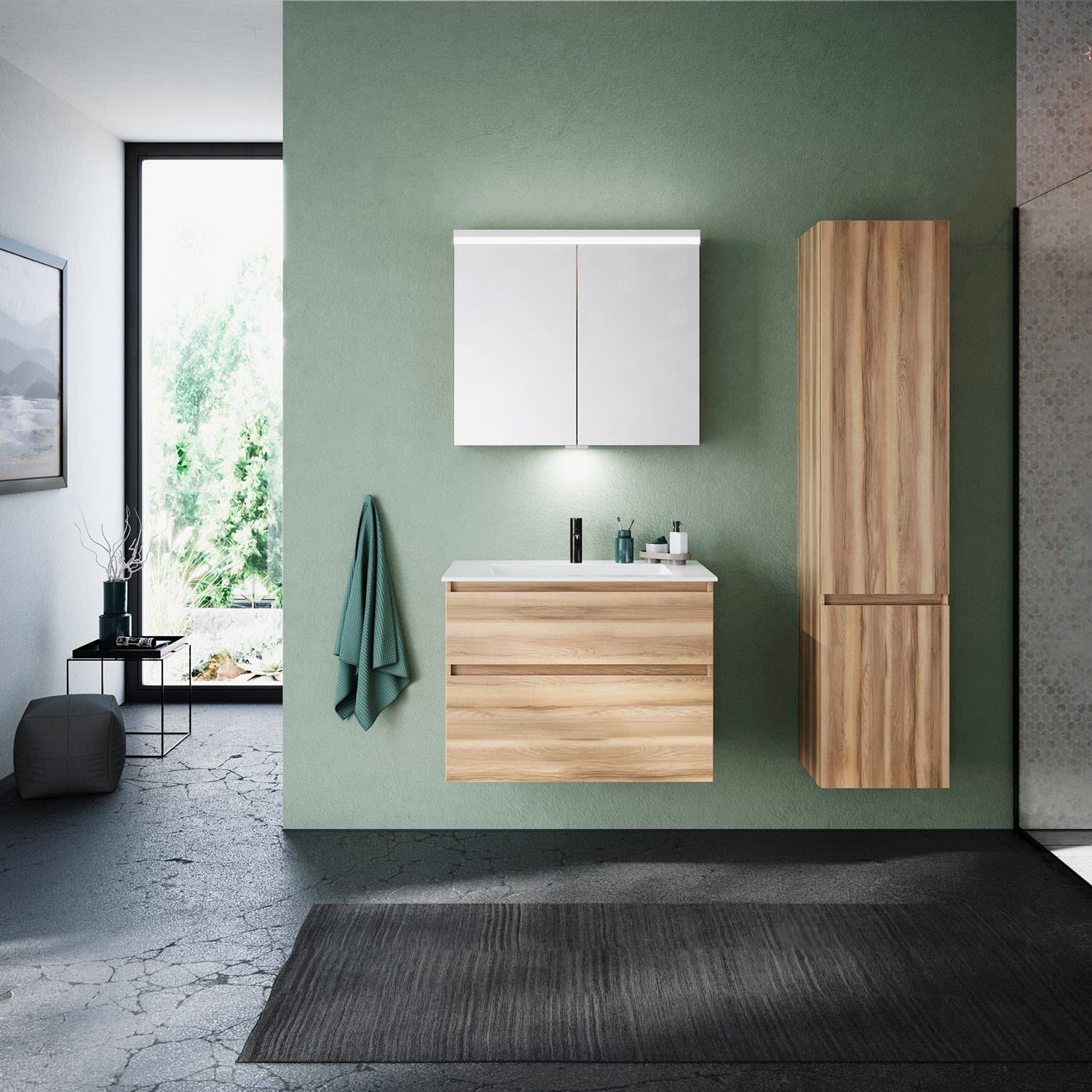 burgbad Lin20 Waschtischunterschrank mit Mineralguss-Waschtisch 82 cm, 2 Auszüge