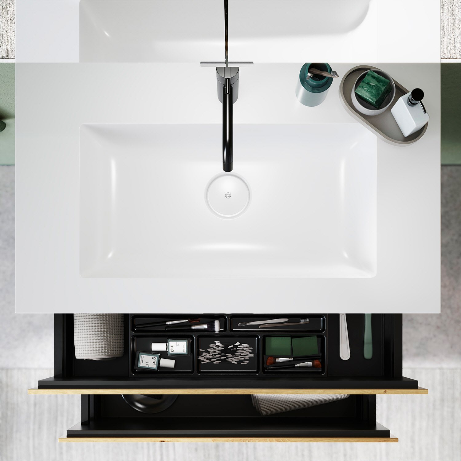 burgbad Lin20 Waschtischunterschrank mit Mineralguss-Waschtisch 82 cm, 2 Auszüge
