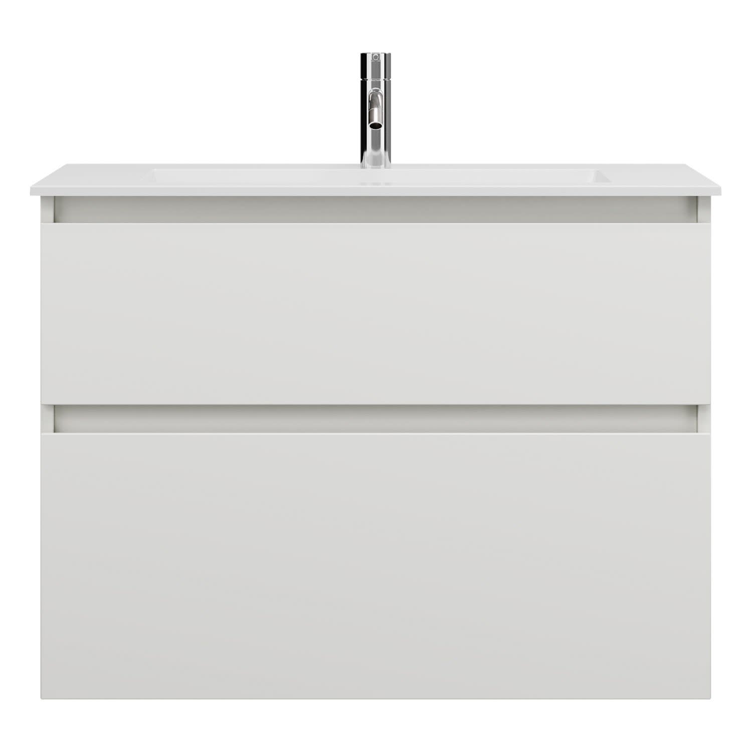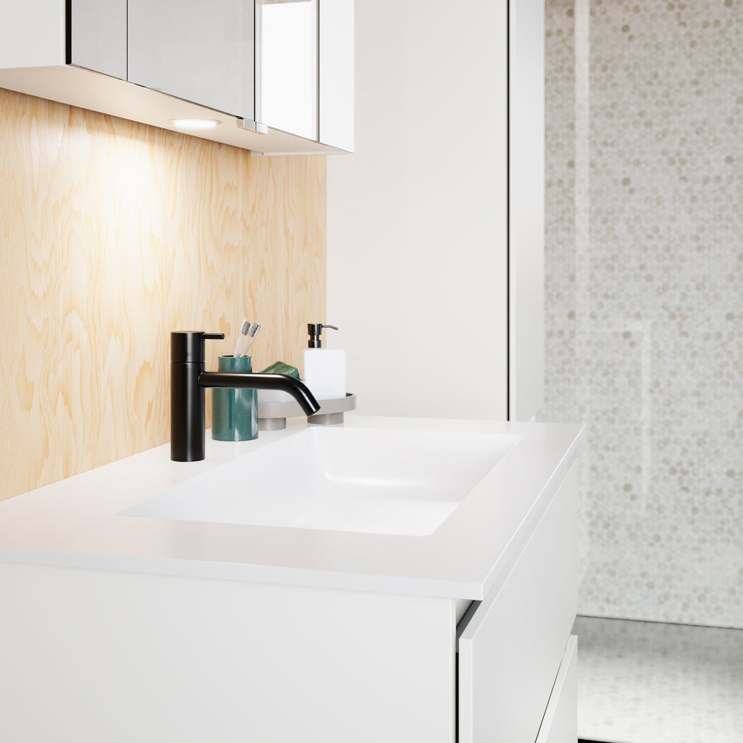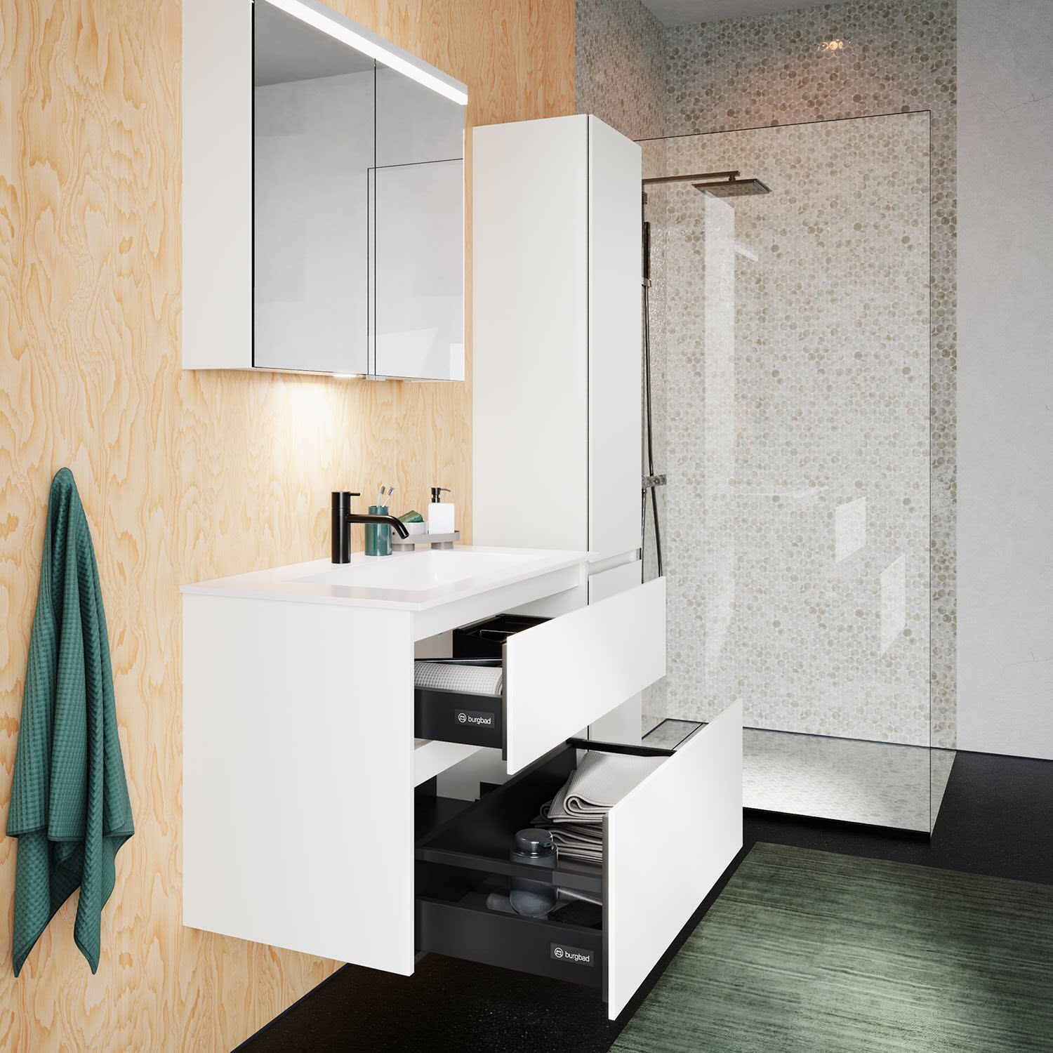 burgbad Lin20 Waschtischunterschrank mit Mineralguss-Waschtisch 82 cm, 2 Auszüge