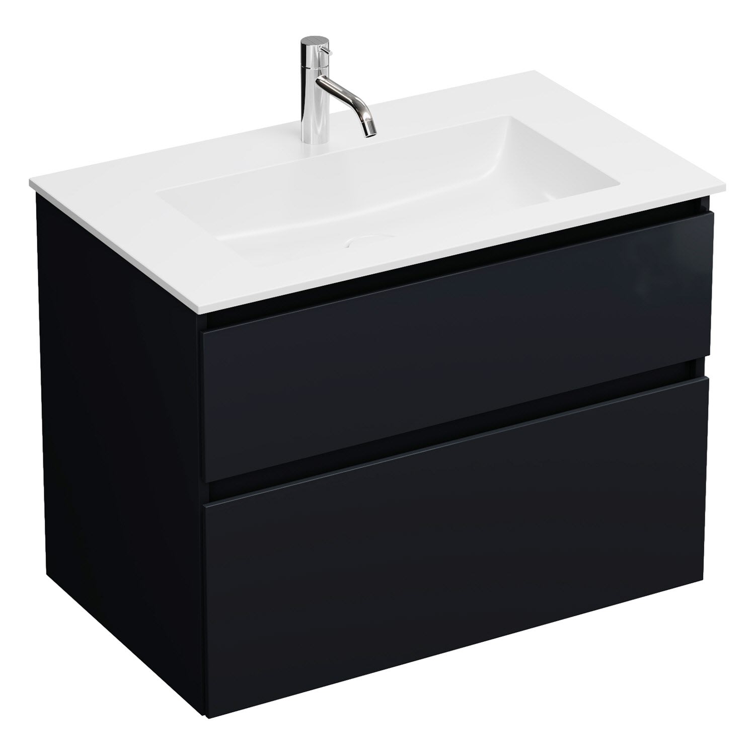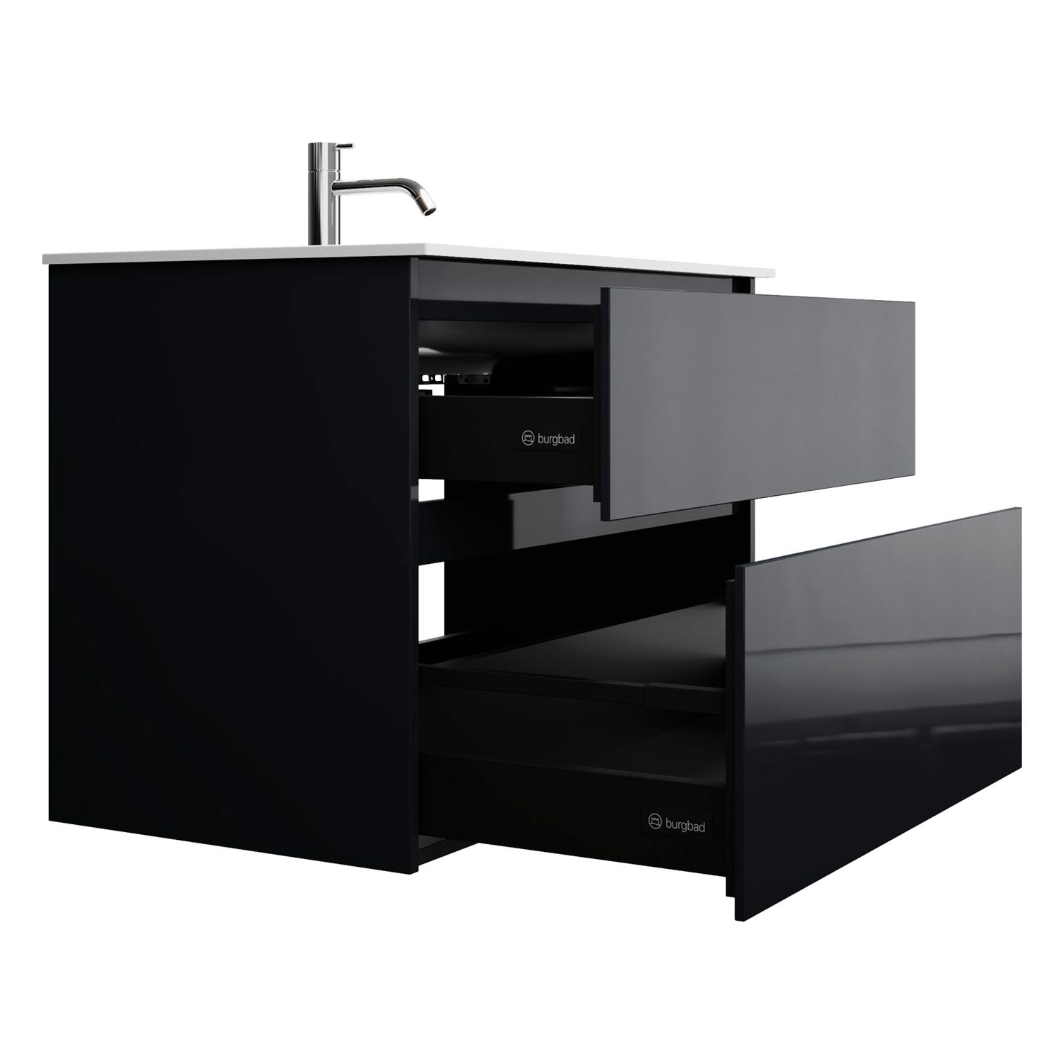 burgbad Lin20 Waschtischunterschrank mit Mineralguss-Waschtisch 82 cm, 2 Auszüge