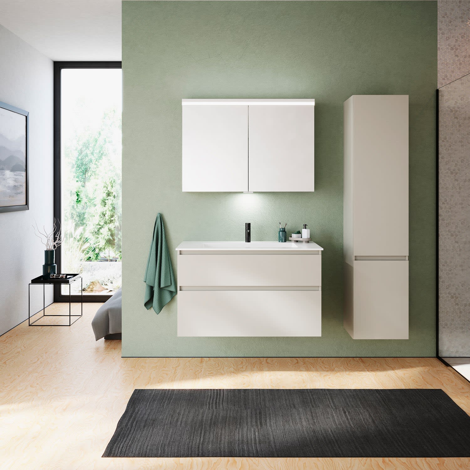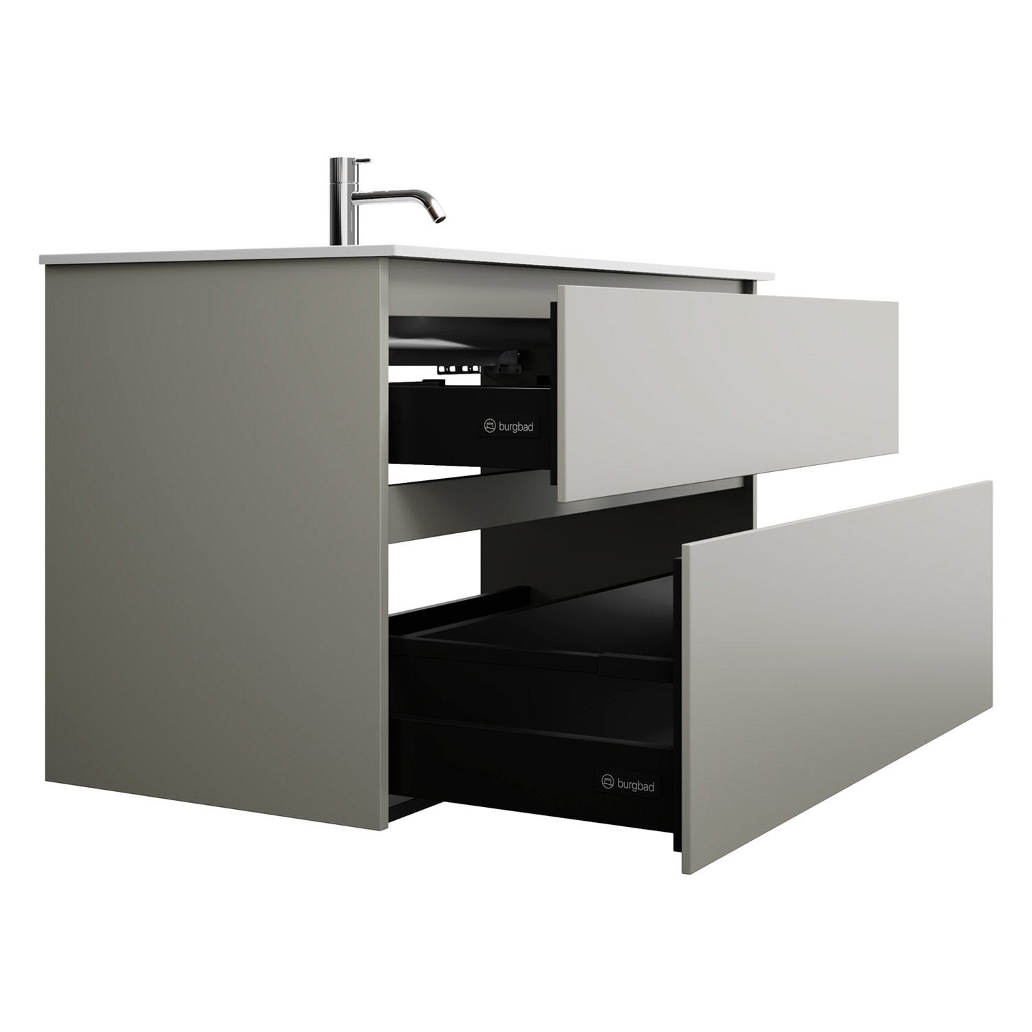 burgbad Lin20 Waschtischunterschrank mit Mineralguss-Waschtisch 102 cm, 2 Auszüge