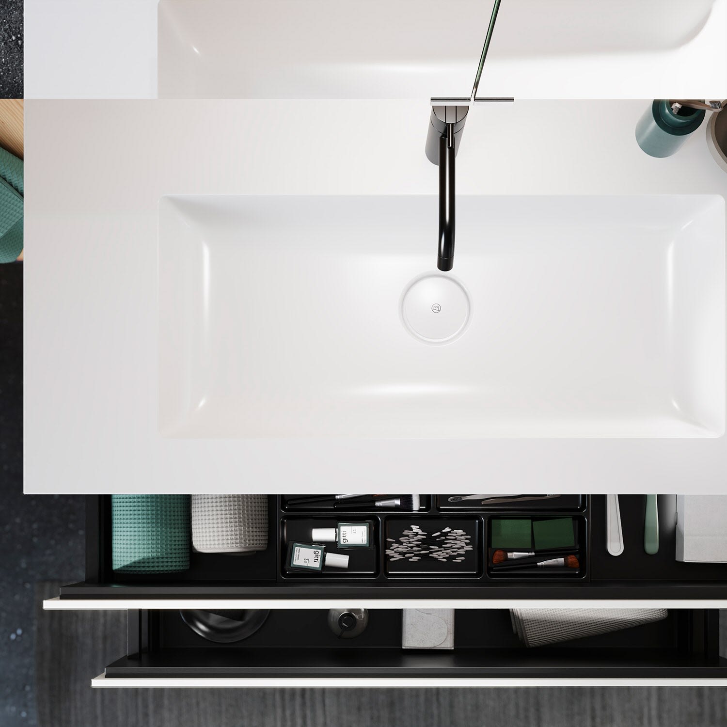 burgbad Lin20 Waschtischunterschrank mit Mineralguss-Waschtisch 102 cm, 2 Auszüge
