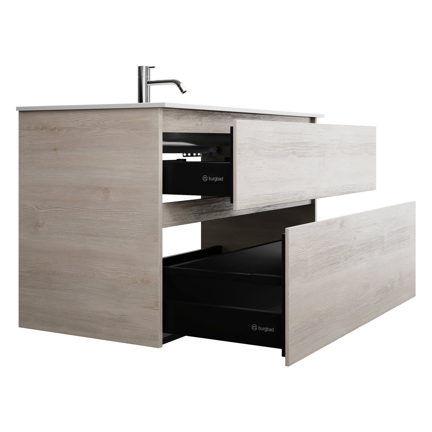 burgbad Lin20 Waschtischunterschrank mit Mineralguss-Waschtisch 102 cm, 2 Auszüge