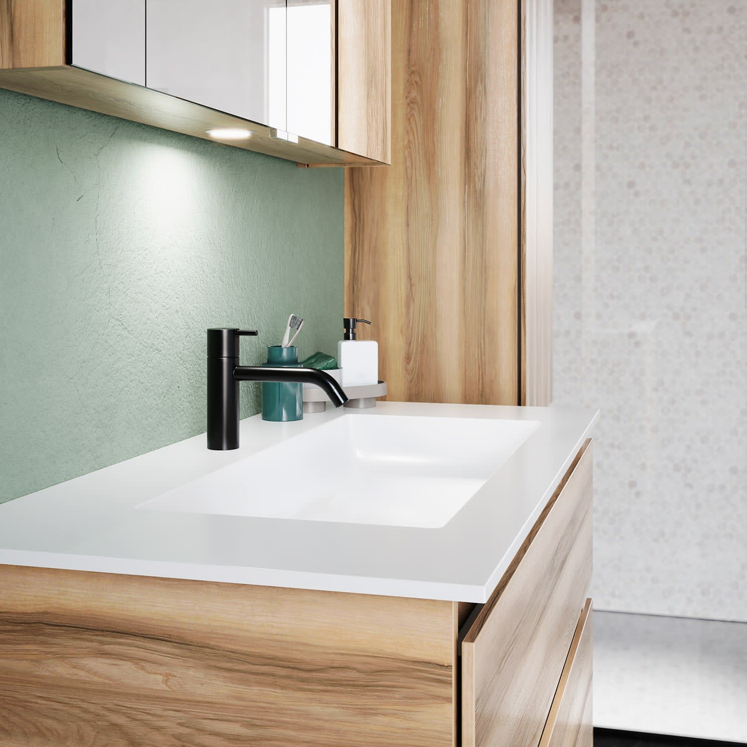- homogene, geschlossene Oberfläche für leichte Pflege und Sauberkeit