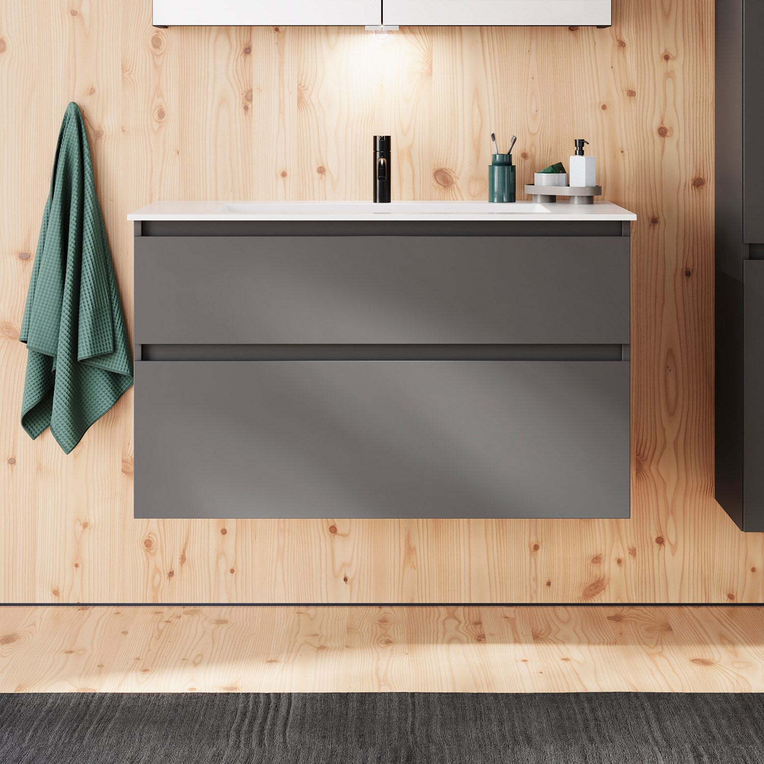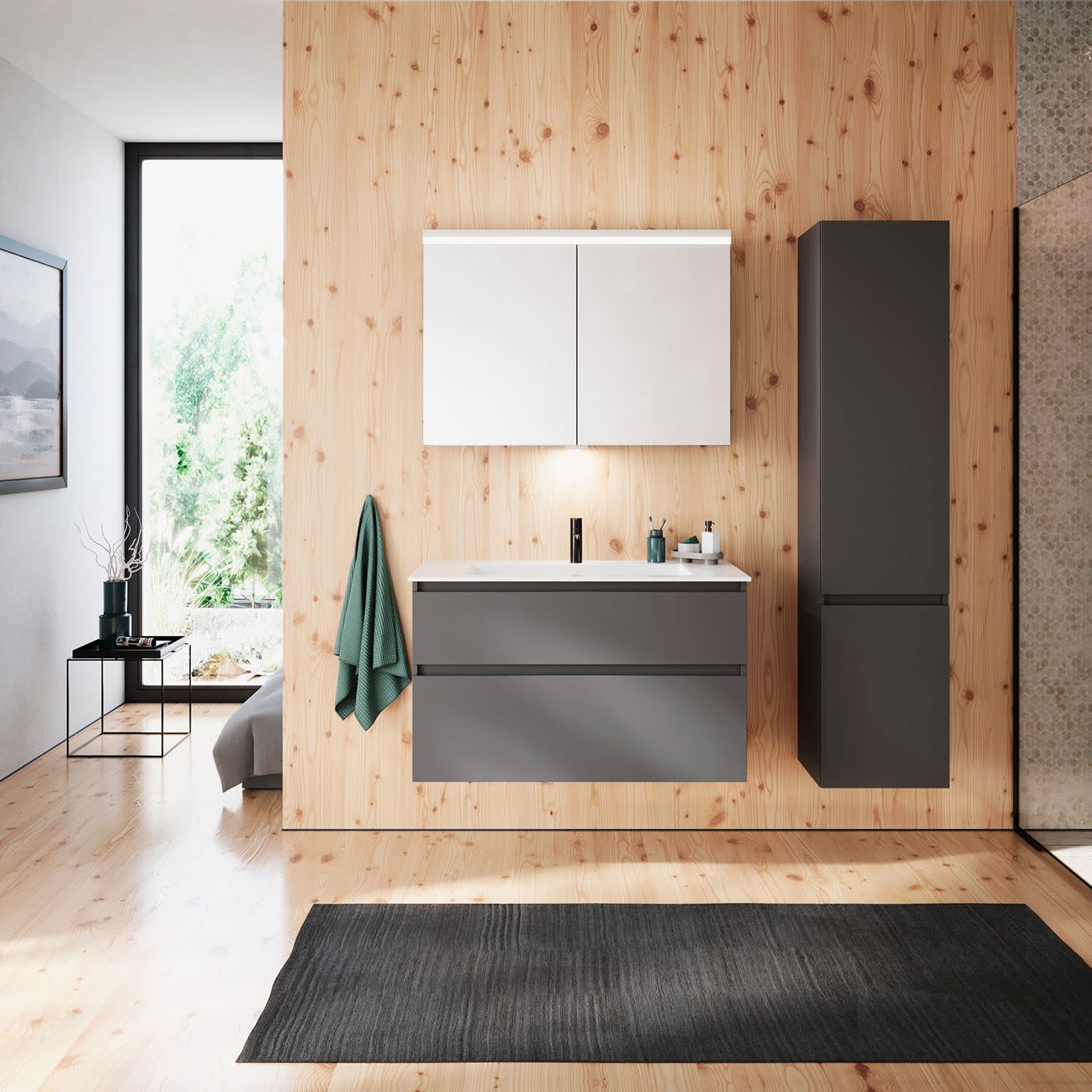 burgbad Lin20 Waschtischunterschrank mit Mineralguss-Waschtisch 102 cm, 2 Auszüge