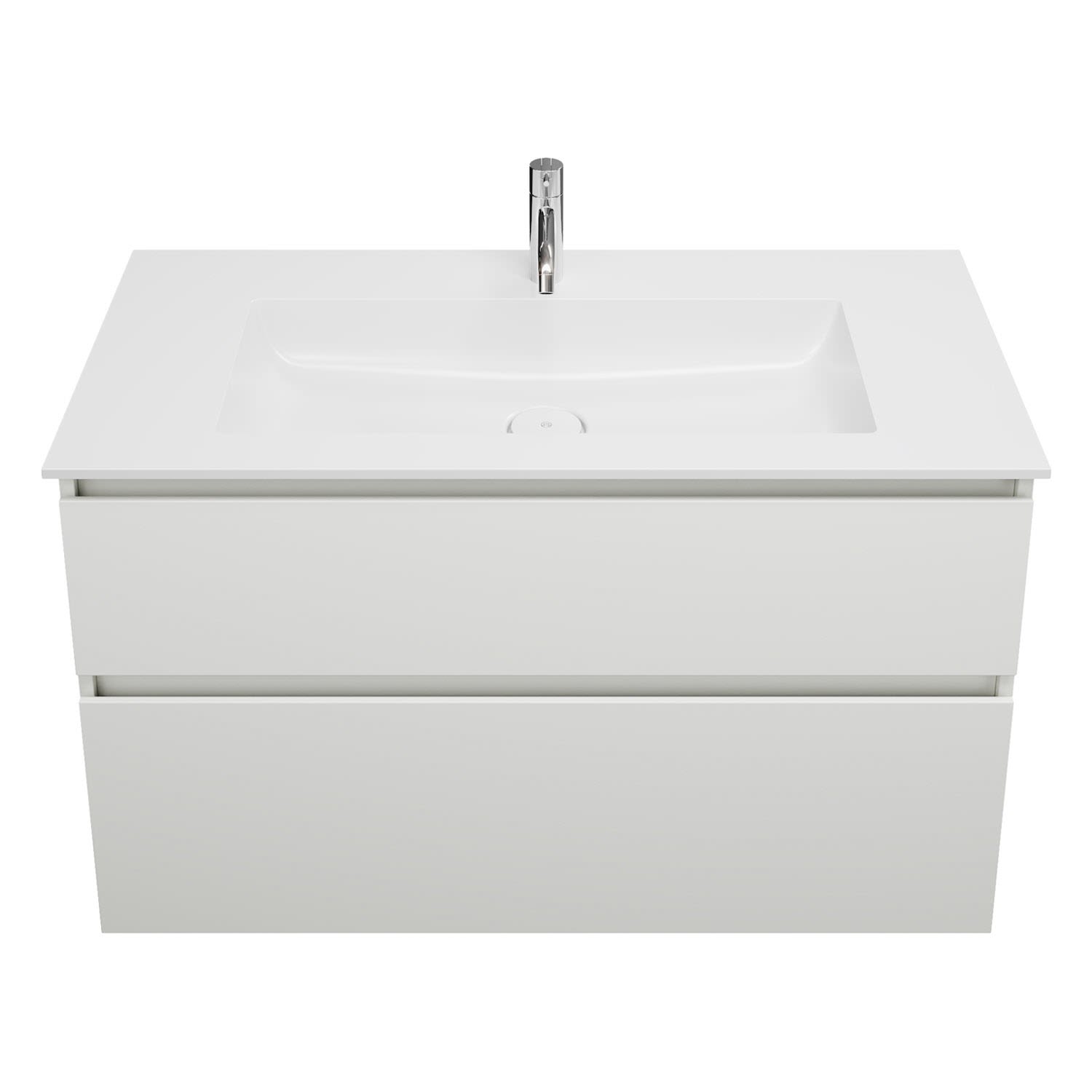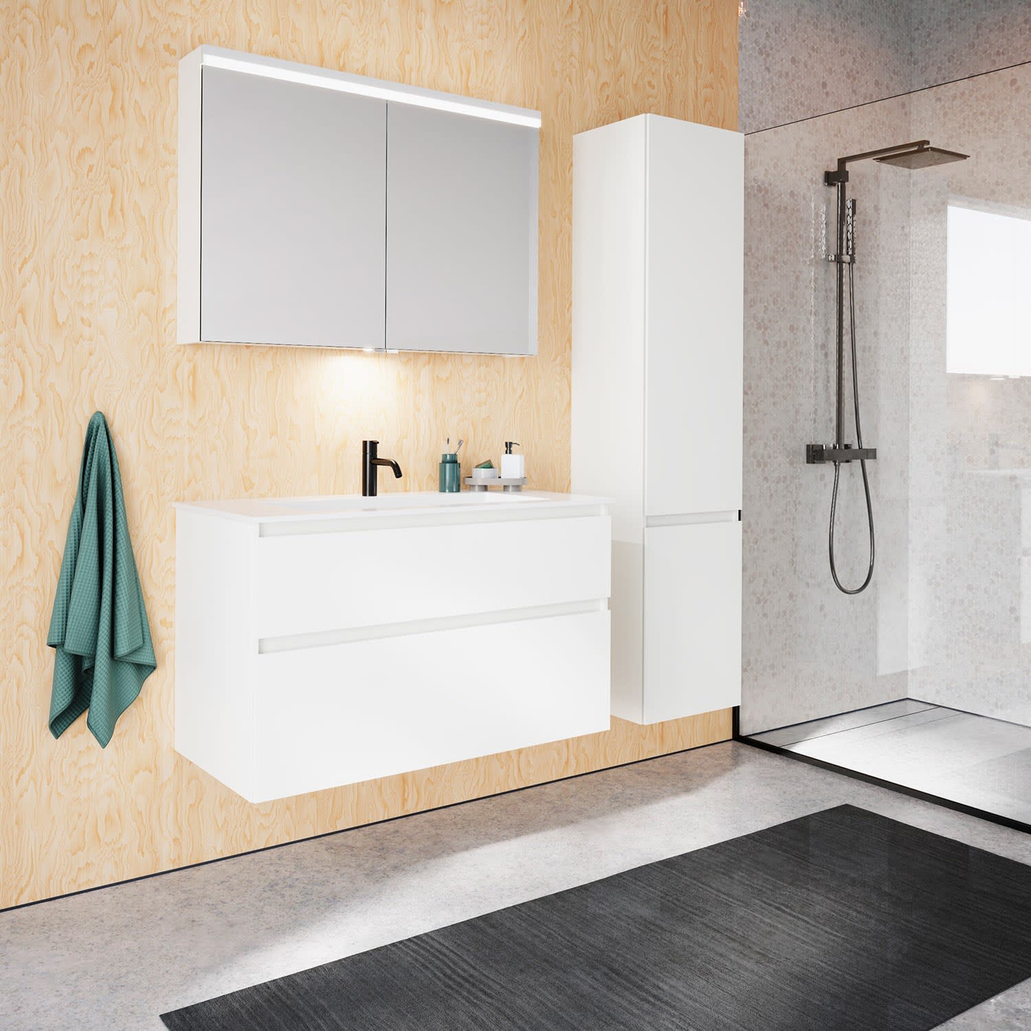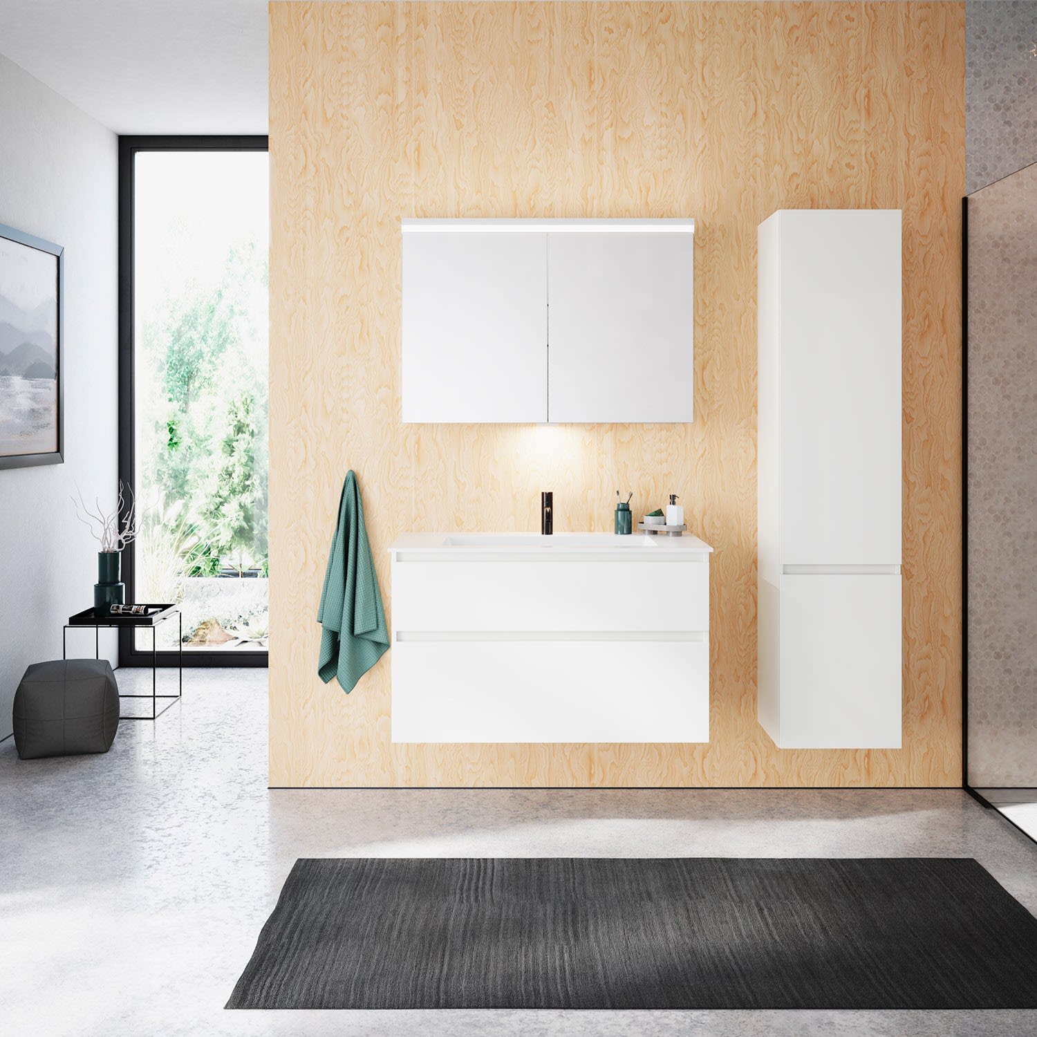 burgbad Lin20 Waschtischunterschrank mit Mineralguss-Waschtisch 102 cm, 2 Auszüge
