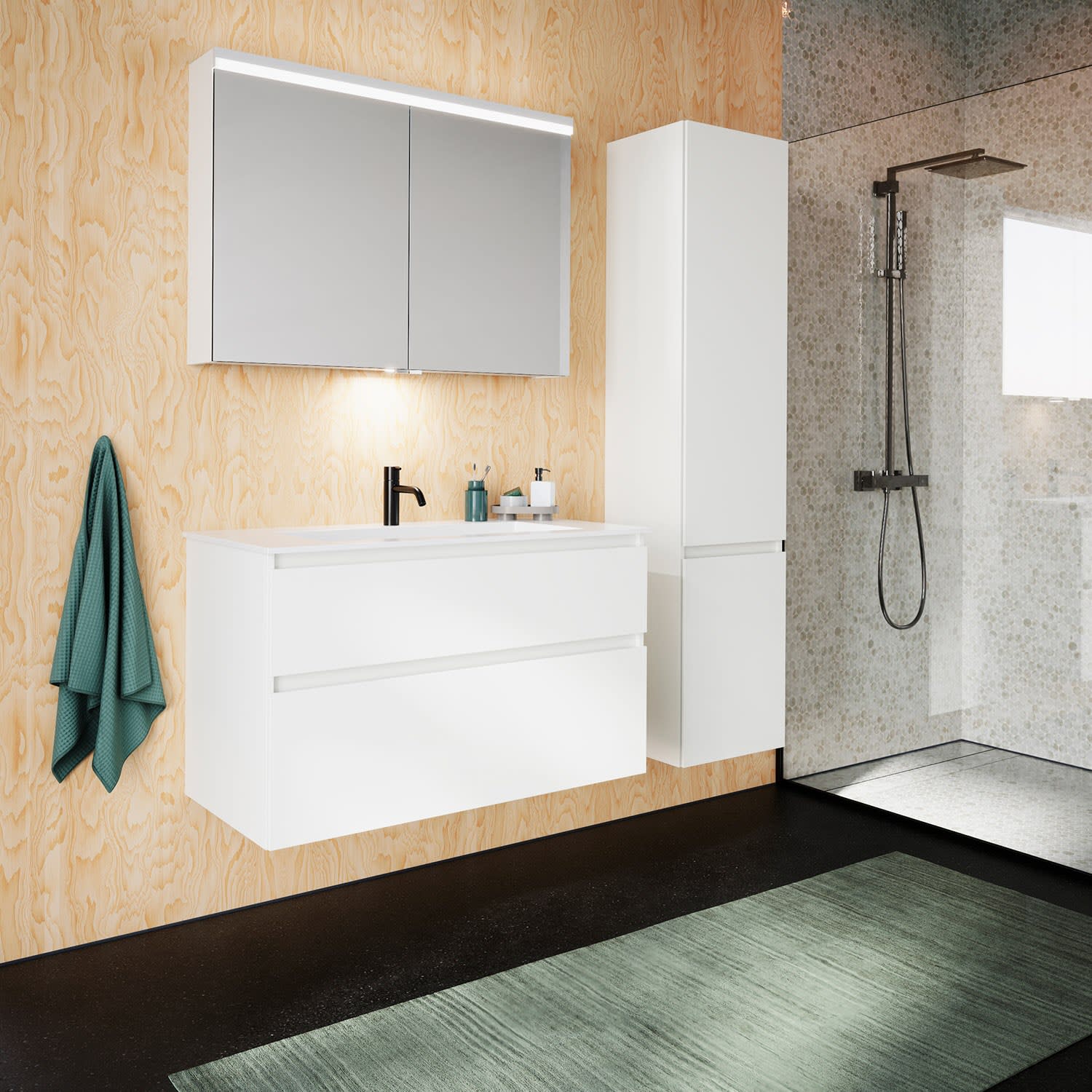 burgbad Lin20 Waschtischunterschrank mit Mineralguss-Waschtisch 102 cm, 2 Auszüge