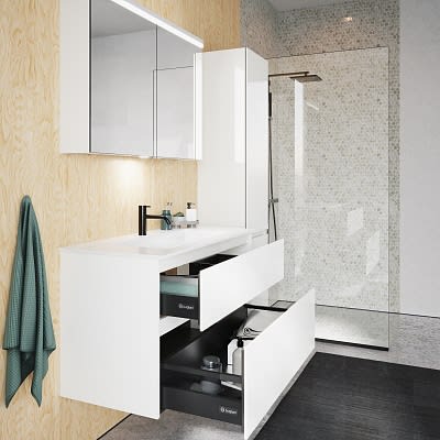 burgbad Lin20 Waschtischunterschrank mit Mineralguss-Waschtisch 102 cm, 2 Auszüge