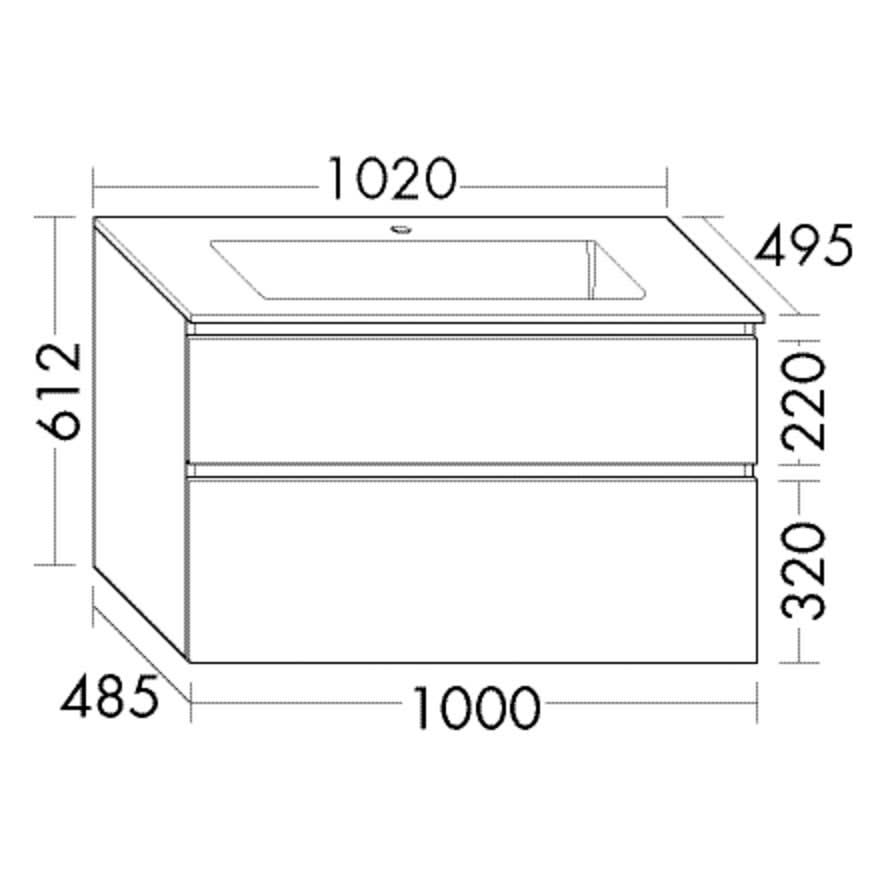 burgbad Lin20 Waschtischunterschrank mit Mineralguss-Waschtisch 102 cm, 2 Auszüge