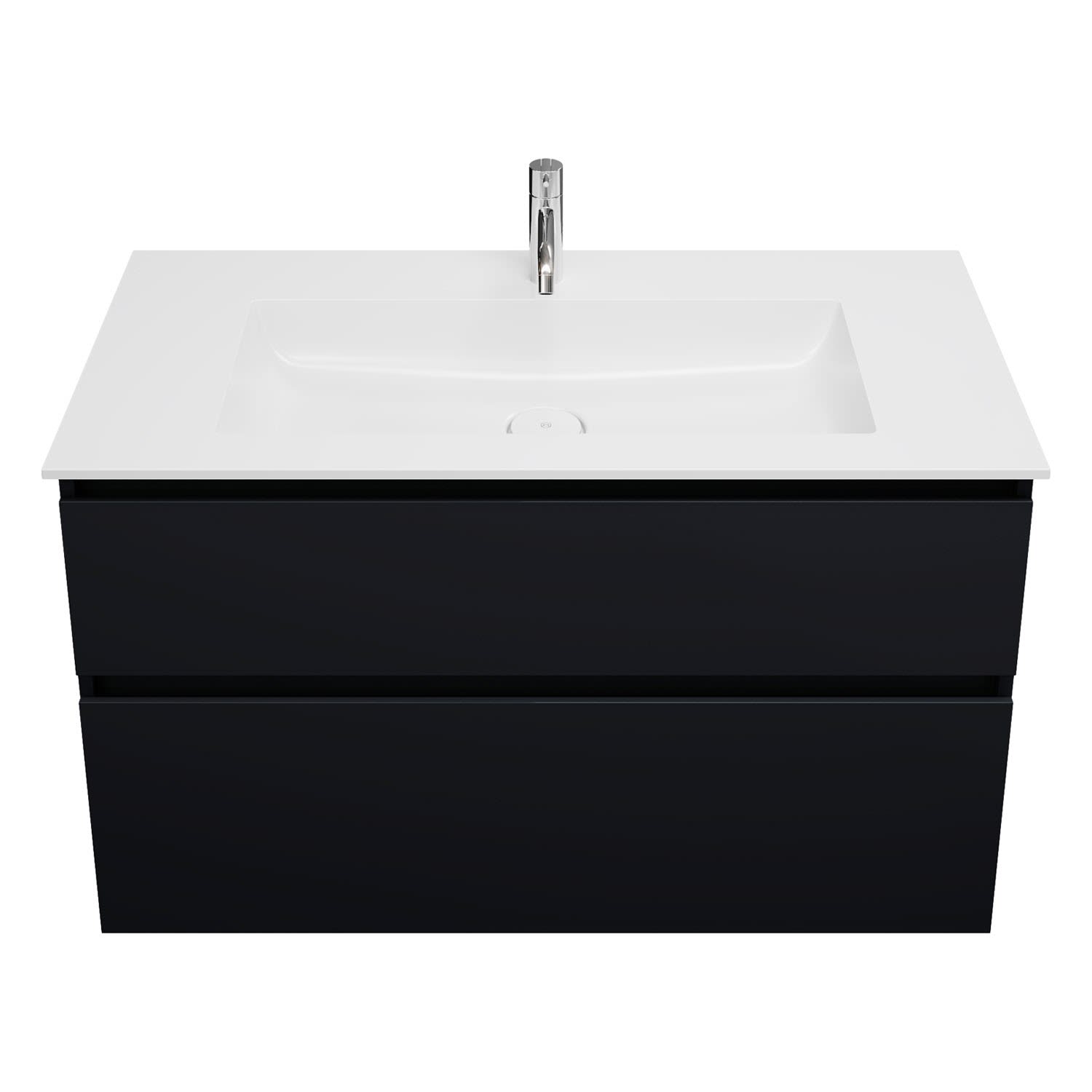burgbad Lin20 Waschtischunterschrank mit Mineralguss-Waschtisch 102 cm, 2 Auszüge