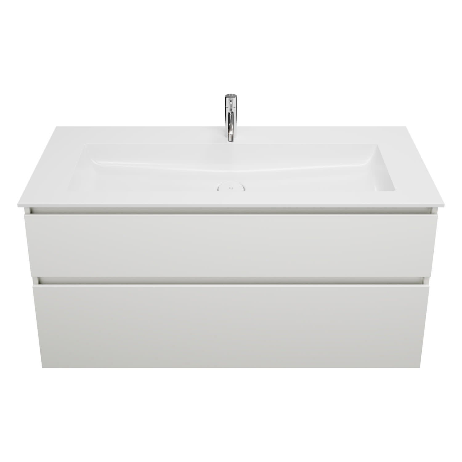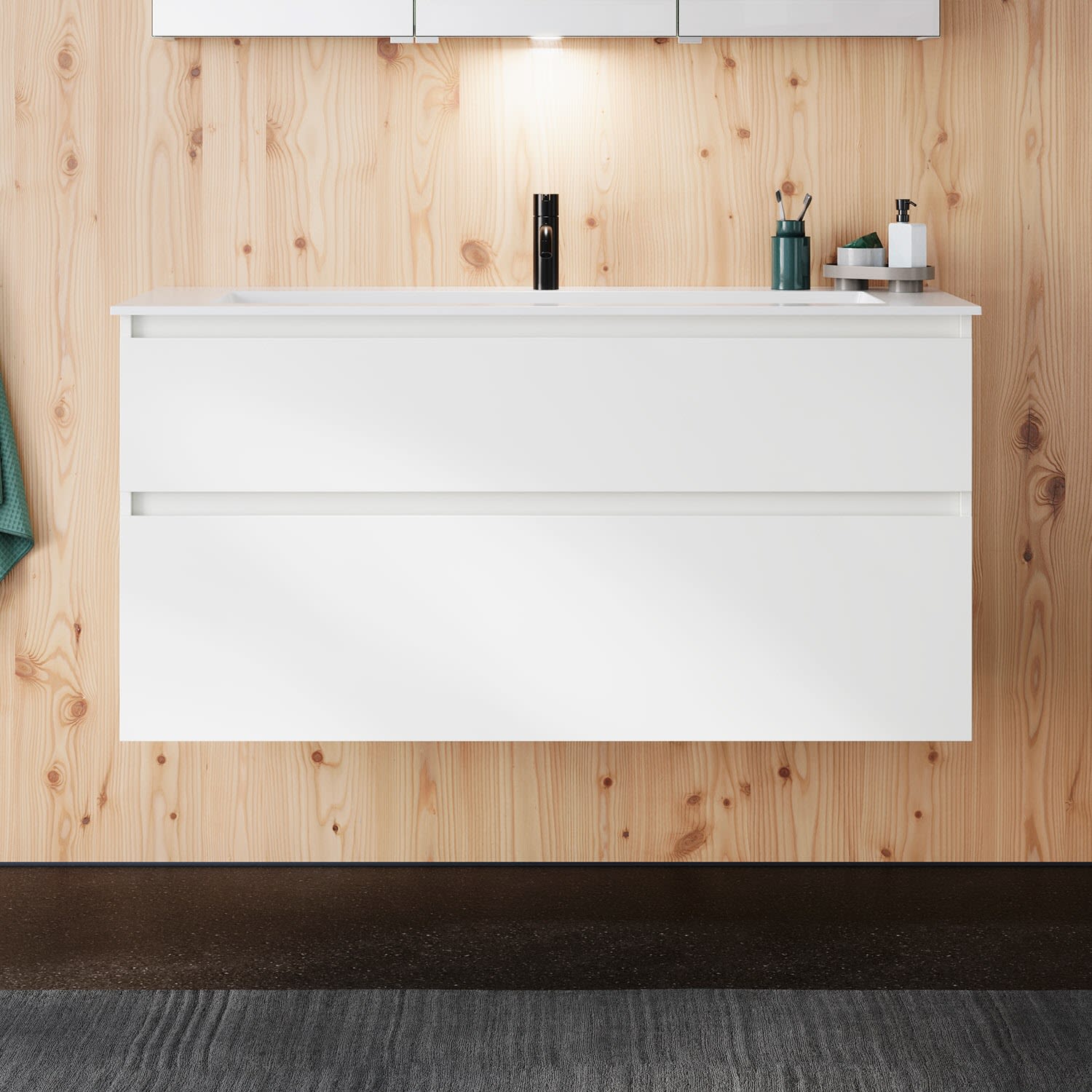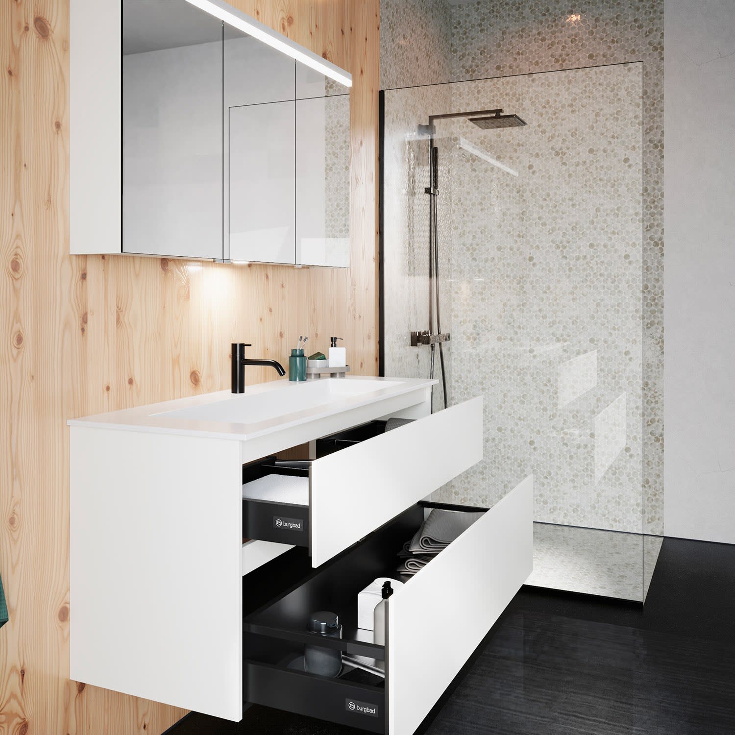 burgbad Lin20 Waschtischunterschrank mit Mineralguss-Waschtisch 122 cm, 2 Auszüge