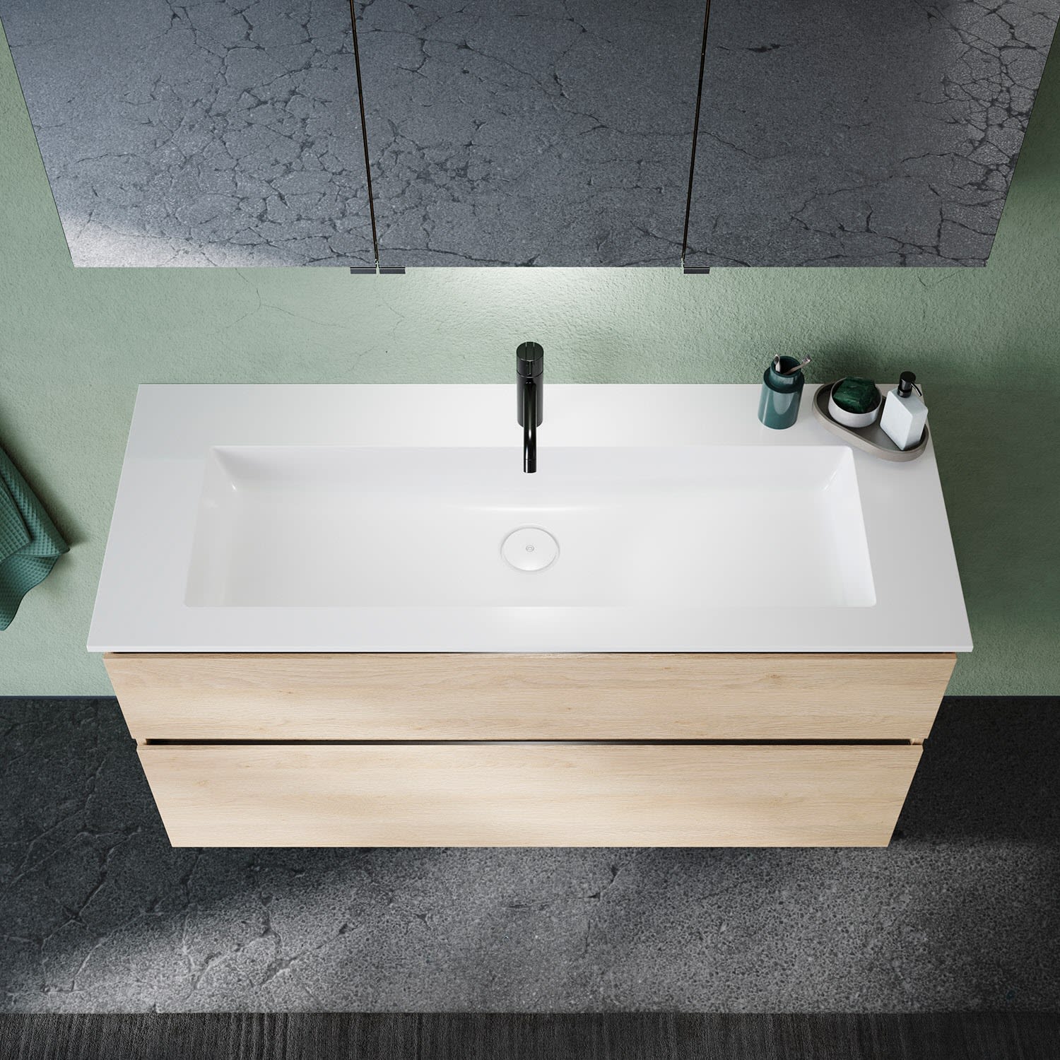 burgbad Lin20 Waschtischunterschrank mit Mineralguss-Waschtisch 122 cm, 2 Auszüge