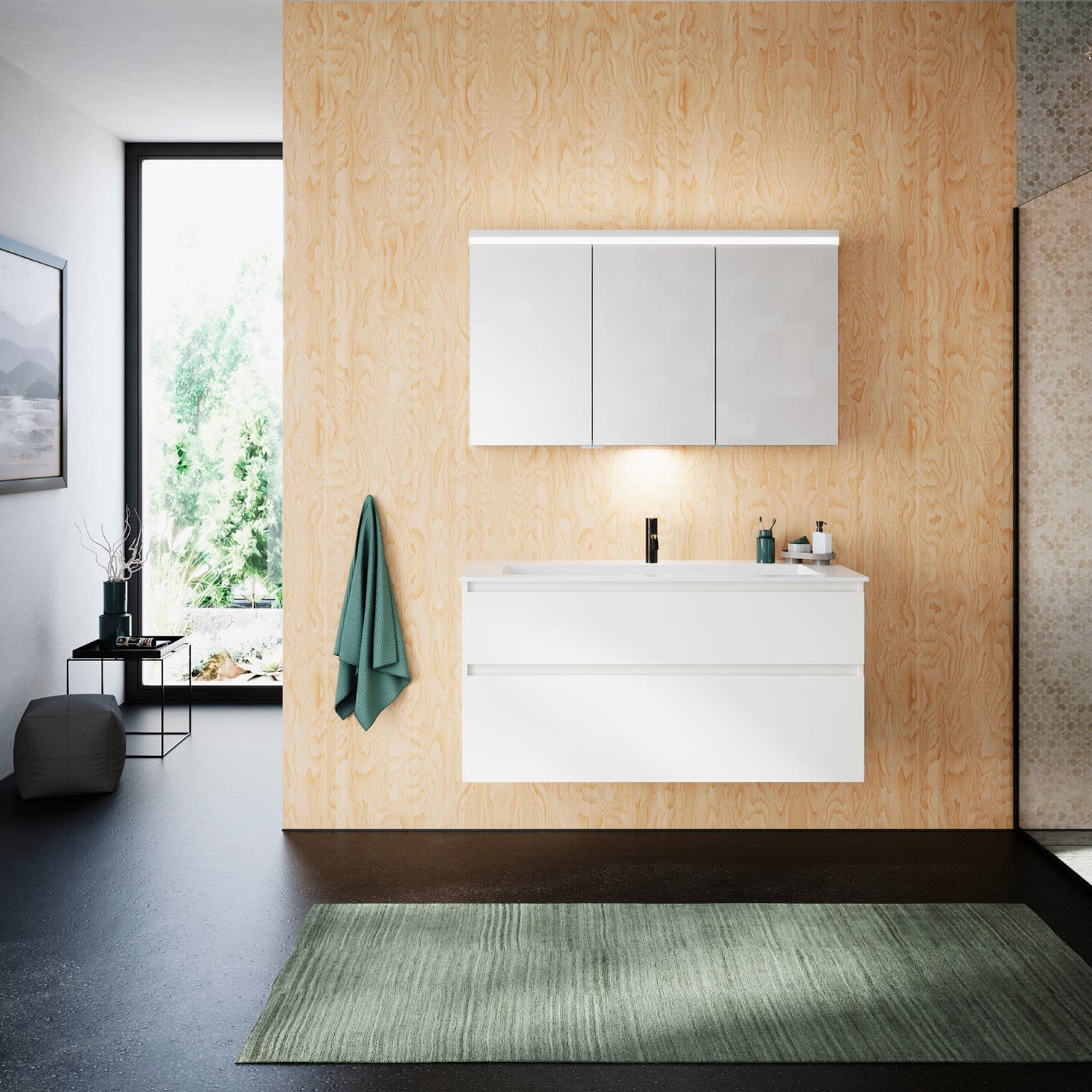 burgbad Lin20 Waschtischunterschrank mit Mineralguss-Waschtisch 122 cm, 2 Auszüge